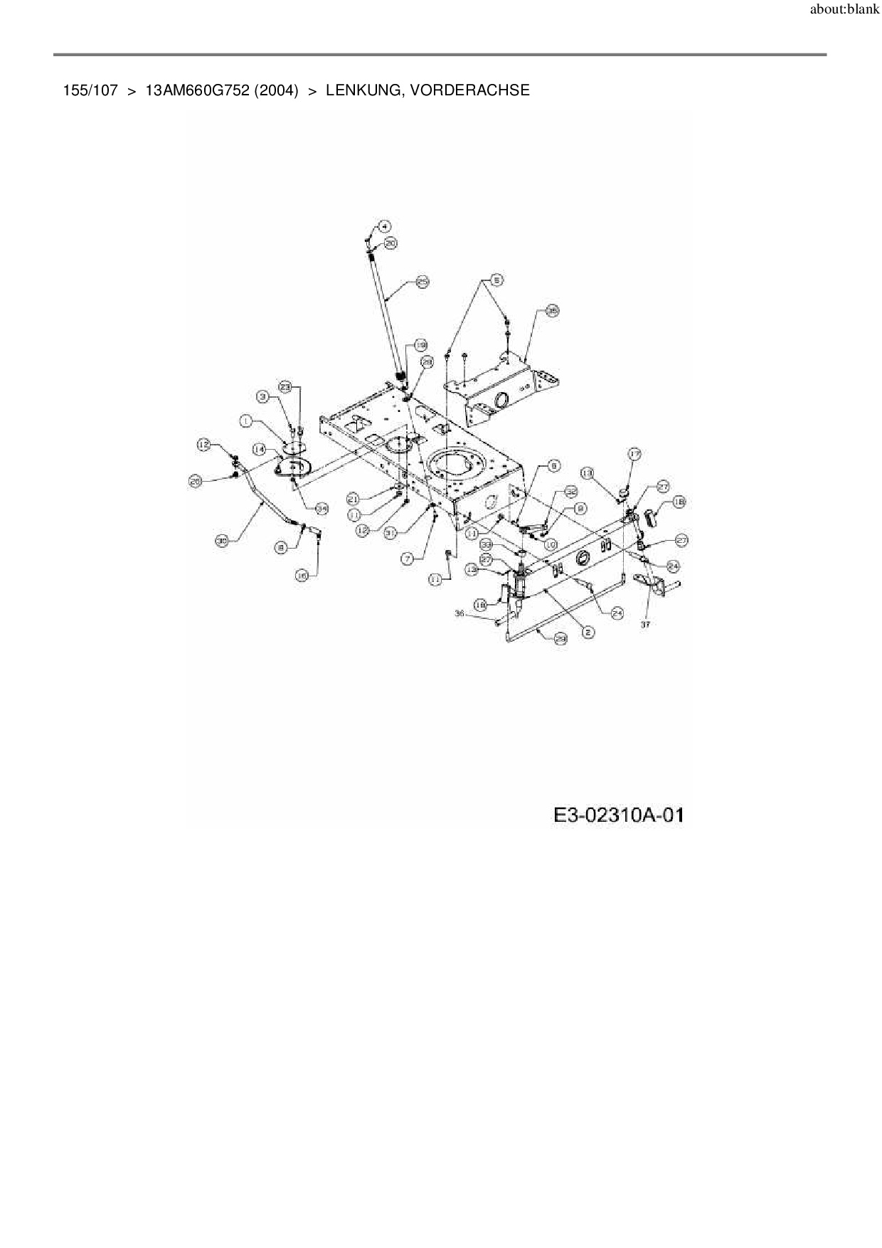 Ersatzteile für Rasentraktor MTD 155/107 aus der Zeichnung Lenkung, Vorderachse: