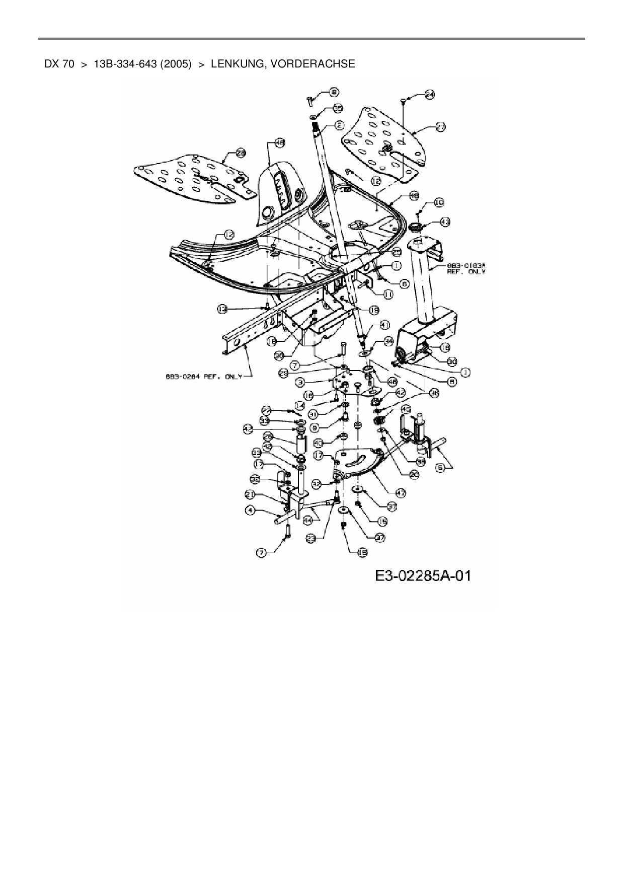 Ersatzteile für Rasentraktor Yard-Man DX 70 aus der Zeichnung Lenkung, Vorderachse: