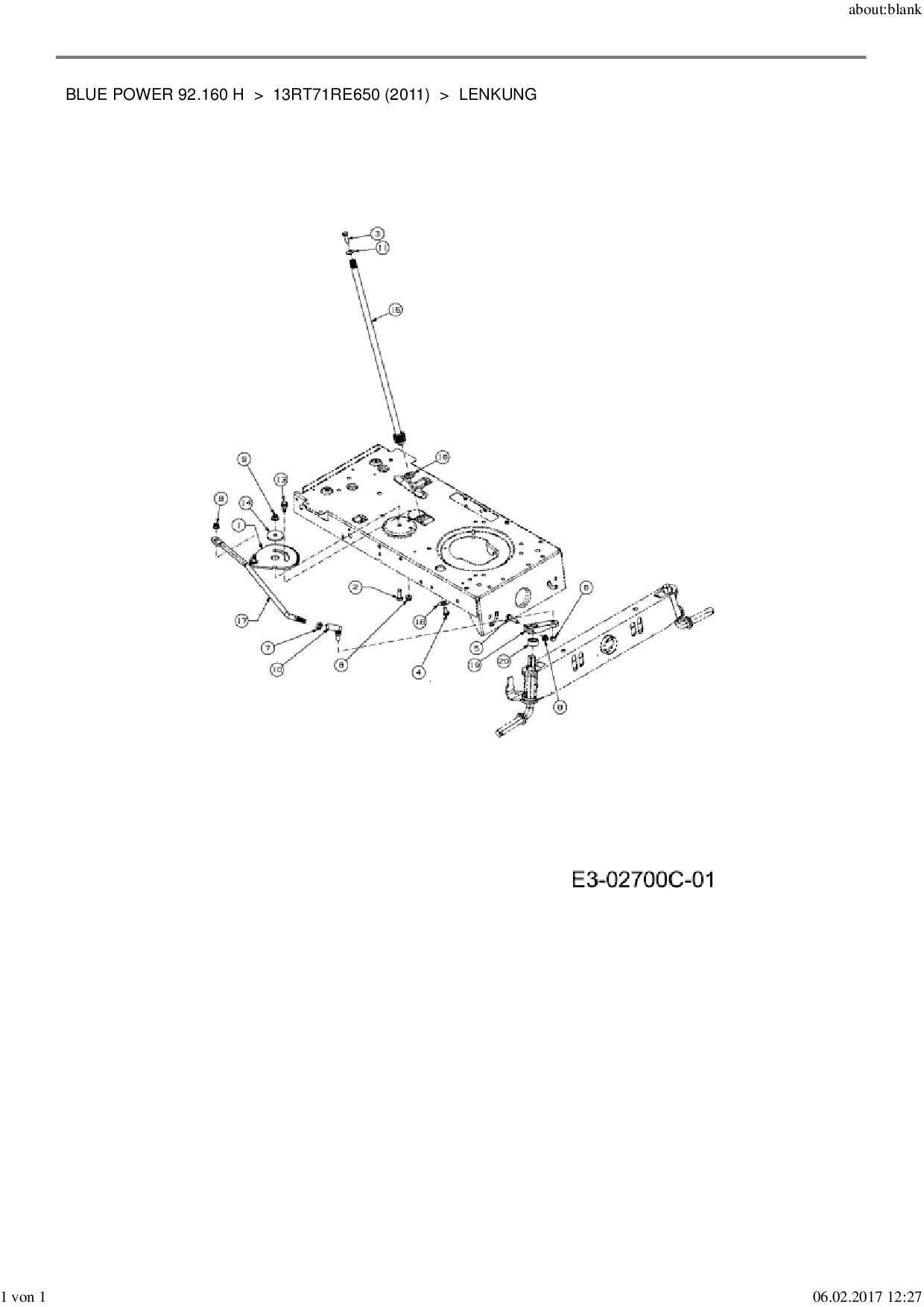 Ersatzteile für Rasentraktor Wolf-Garten Blue Power 92.160 H aus der Zeichnung Lenkung: