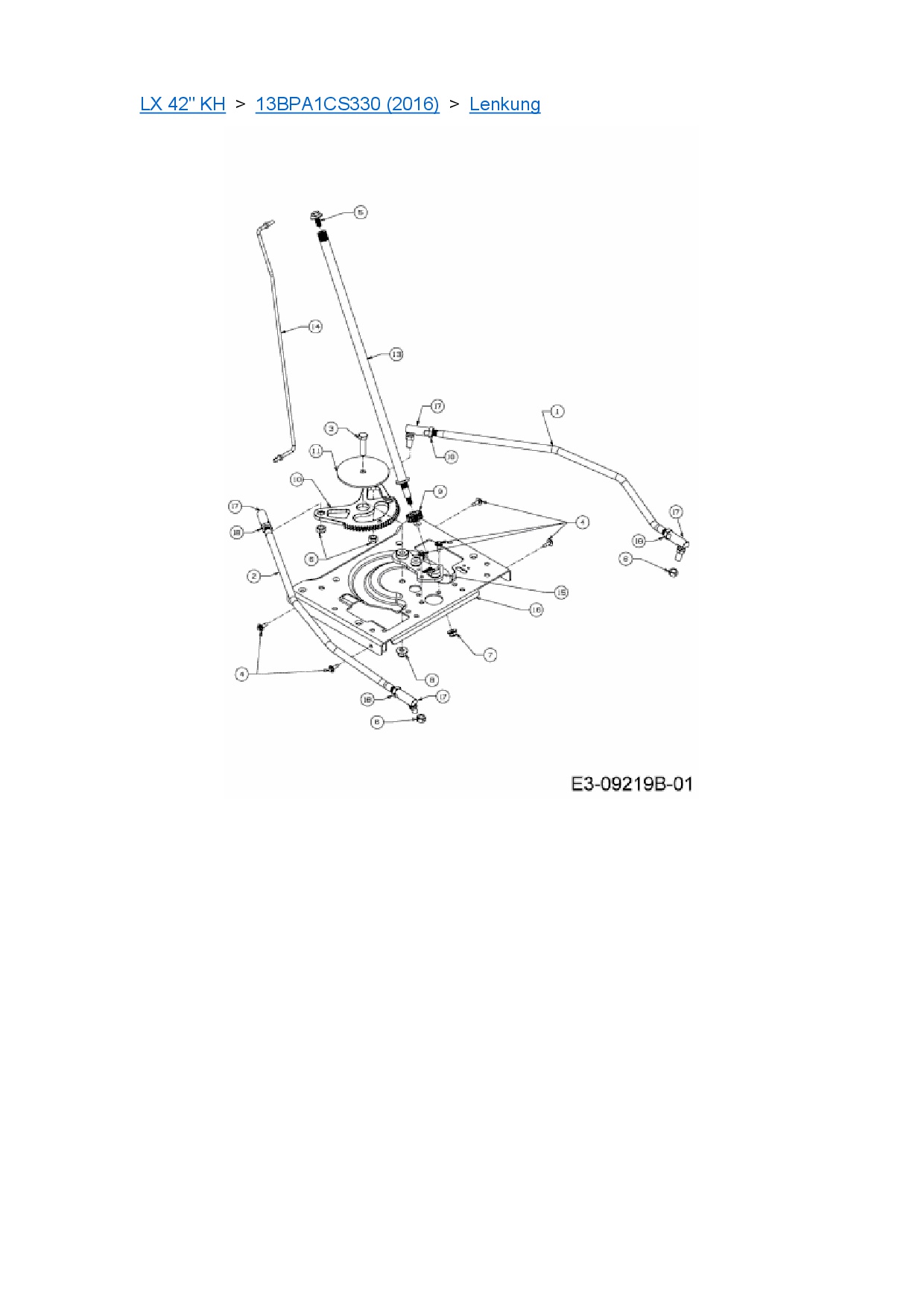 Ersatzteile für Rasentraktor Cub Cadet LX 42" KH aus der Zeichnung Lenkung: