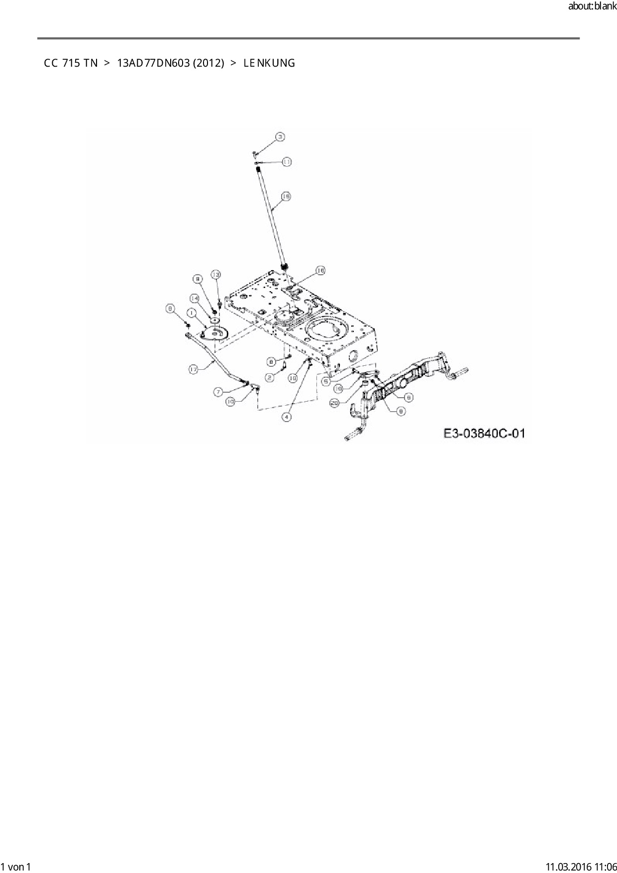 Ersatzteile für Rasentraktor Cub Cadet CC 715 TN aus der Zeichnung Lenkung: