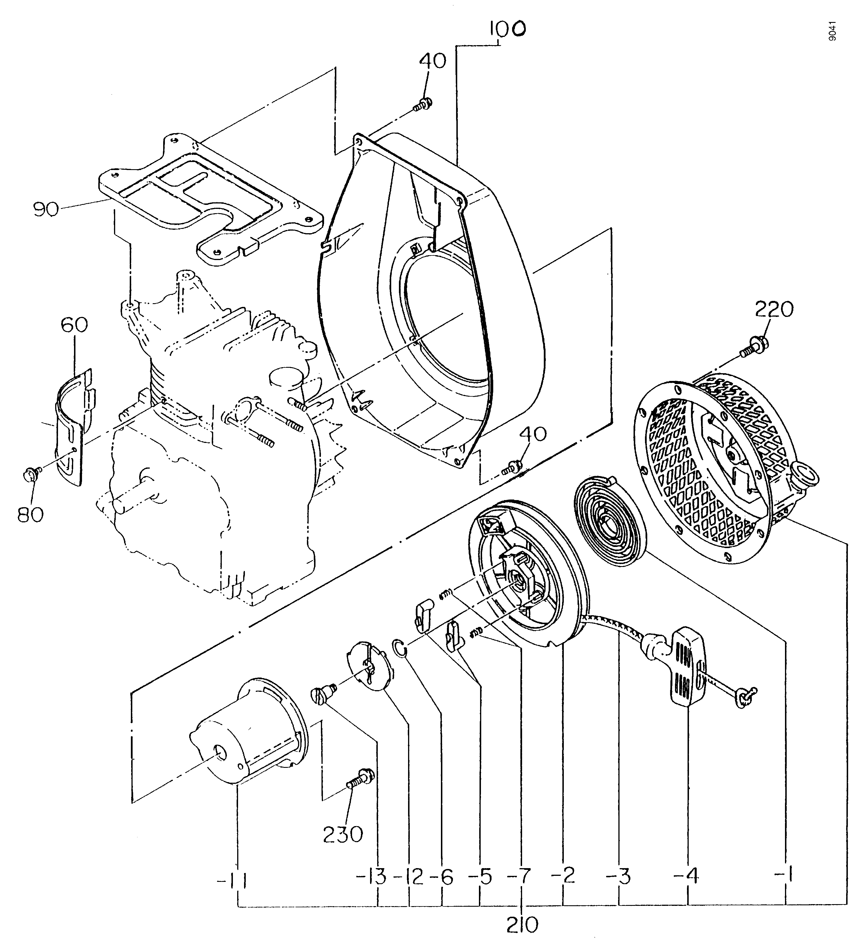 Ersatzteile für Agria # Motore # Robin # Art-Nr 0007028 | Robin EY28 # Motor Einzelteile # Lüftergehäuse, Reversierstarter | Robin EY28 (2)