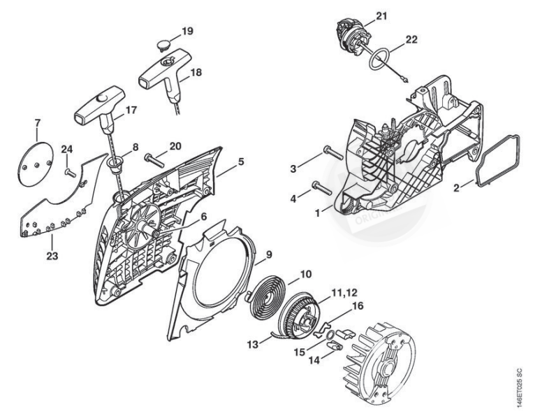 Hier finden Sie alle Ersatzteile von Stihl Benzin-Motorsägen MS 270 C-B der Zeichnungsgruppe Lüftergehäuse mit Anwerfvorrichtung:
