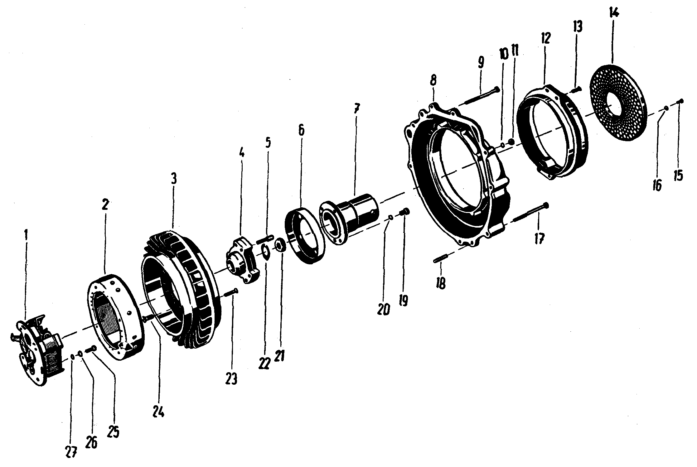 Lüfterseite, Anwerfnabe Motor-Typ 34 M 6, bis Motor-Nr.145934, Engine type 44 M 6 up to engine no.145733