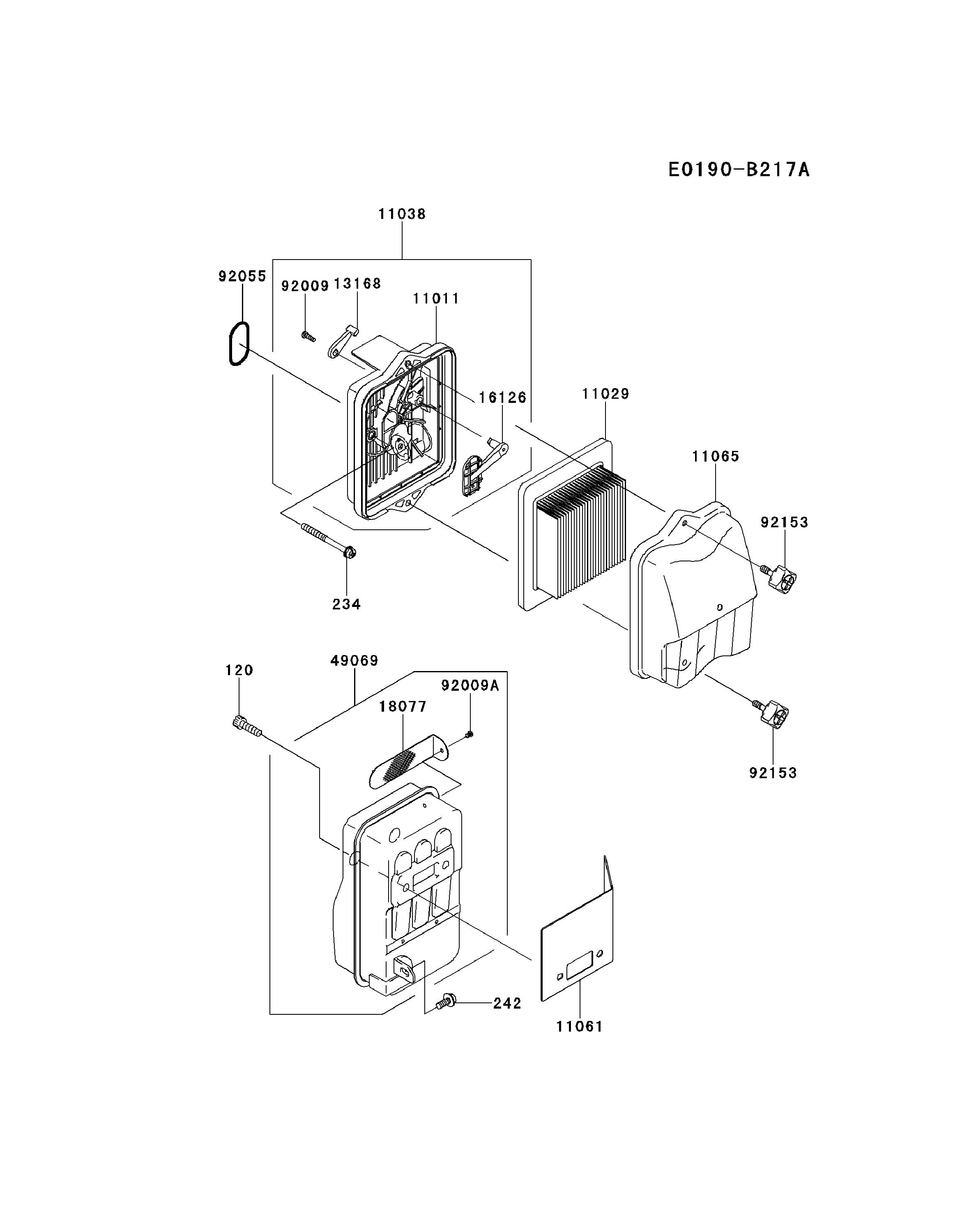Hier finden Sie alle Ersatzteile von Kawasaki Laubbläser HG750A-GS00 (KRB750B) aus der Zeichnung Luftfilter/Auspuff: