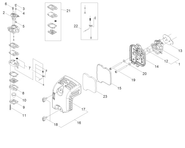 Zeichnung von shindaiwa Motorsensen Kreiselscheren T3410PRS-230 Luftfilter, Vergaser WYL-208B: