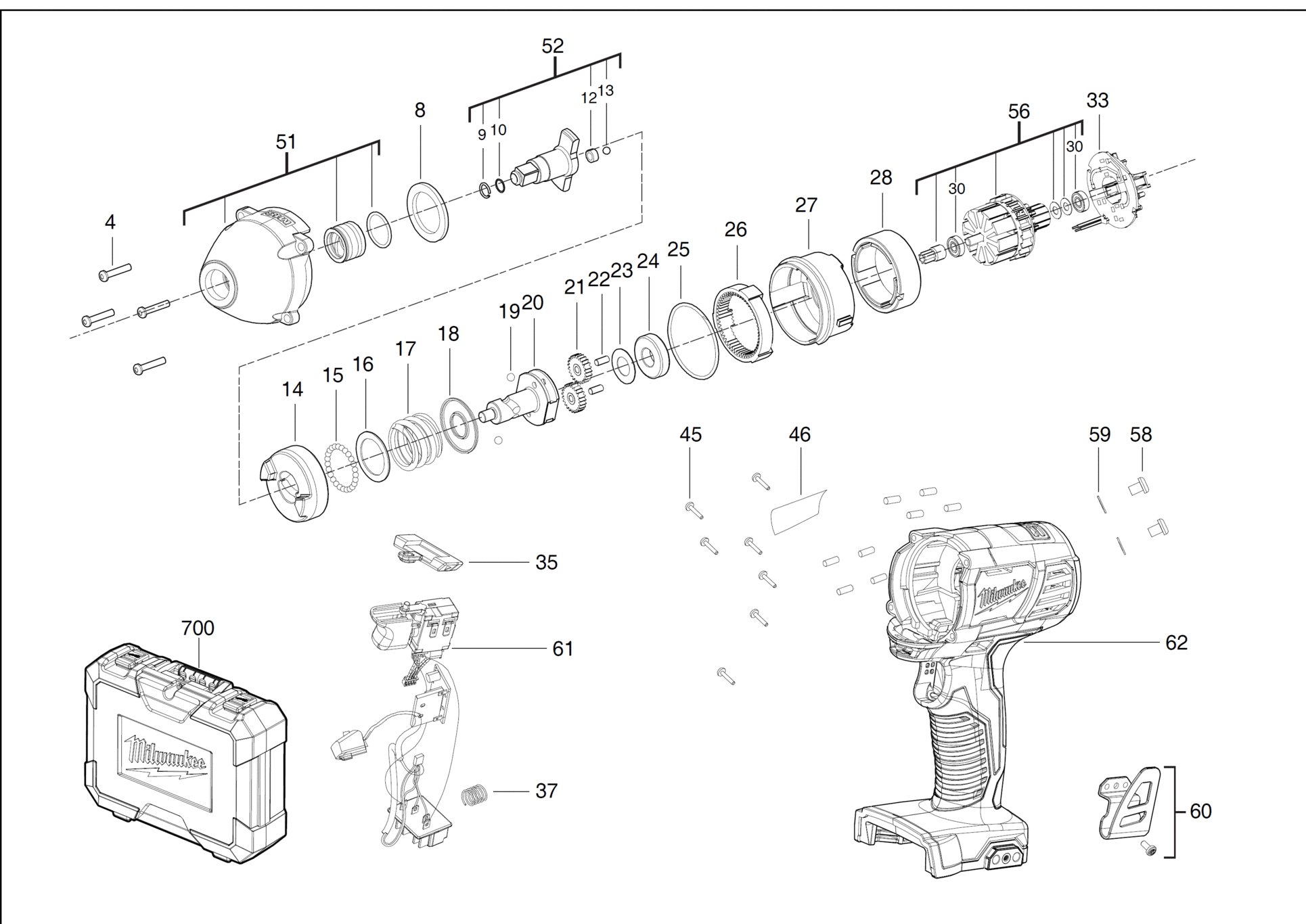 Ersatzteile für Milwaukee M18BIW38-402C - RotaryDrillsandDrivers 40004436 (4000443601 4933443620)