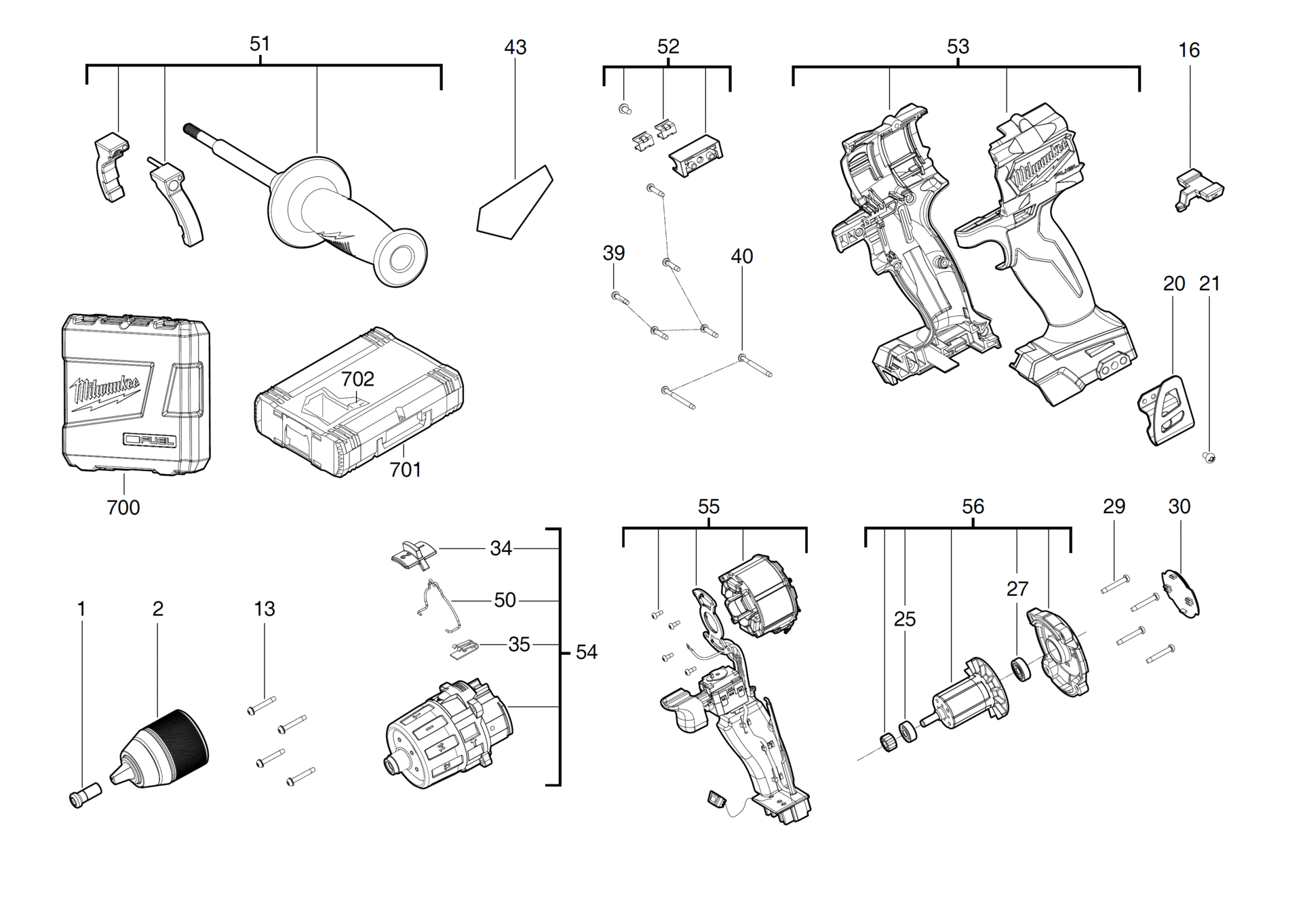 Ersatzteile für Milwaukee M18FPD2-402C - RotaryDrillsandDrivers 400046911 (4000469114 4933464561)