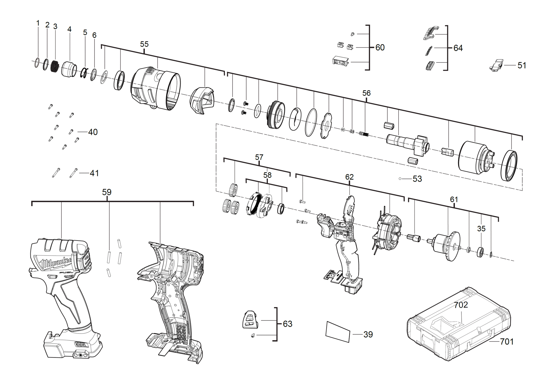 Ersatzteile für Milwaukee M18FQID-502X GB2 - RotaryDrillsandDrivers 40004 (4000481242 4933451791)
