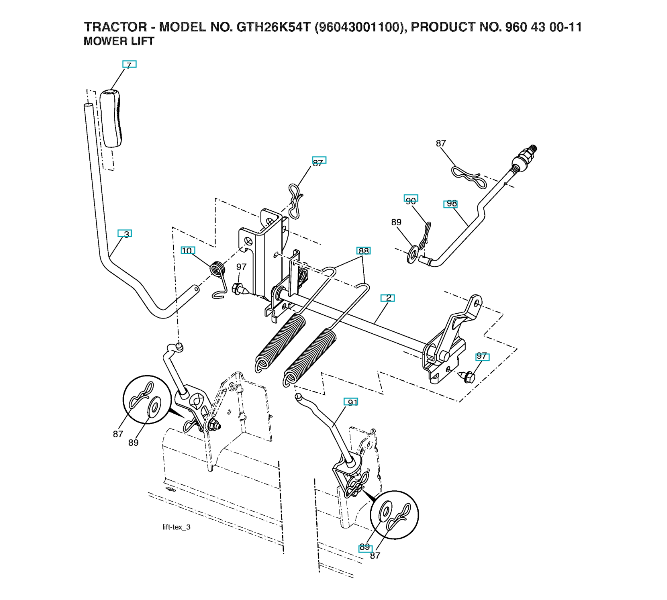 Ersatzteile für Husqvarna Gartentraktor GTH26K54 T ( 96043001100, 2006-03 ) MÄHWERKSAUSHUB: