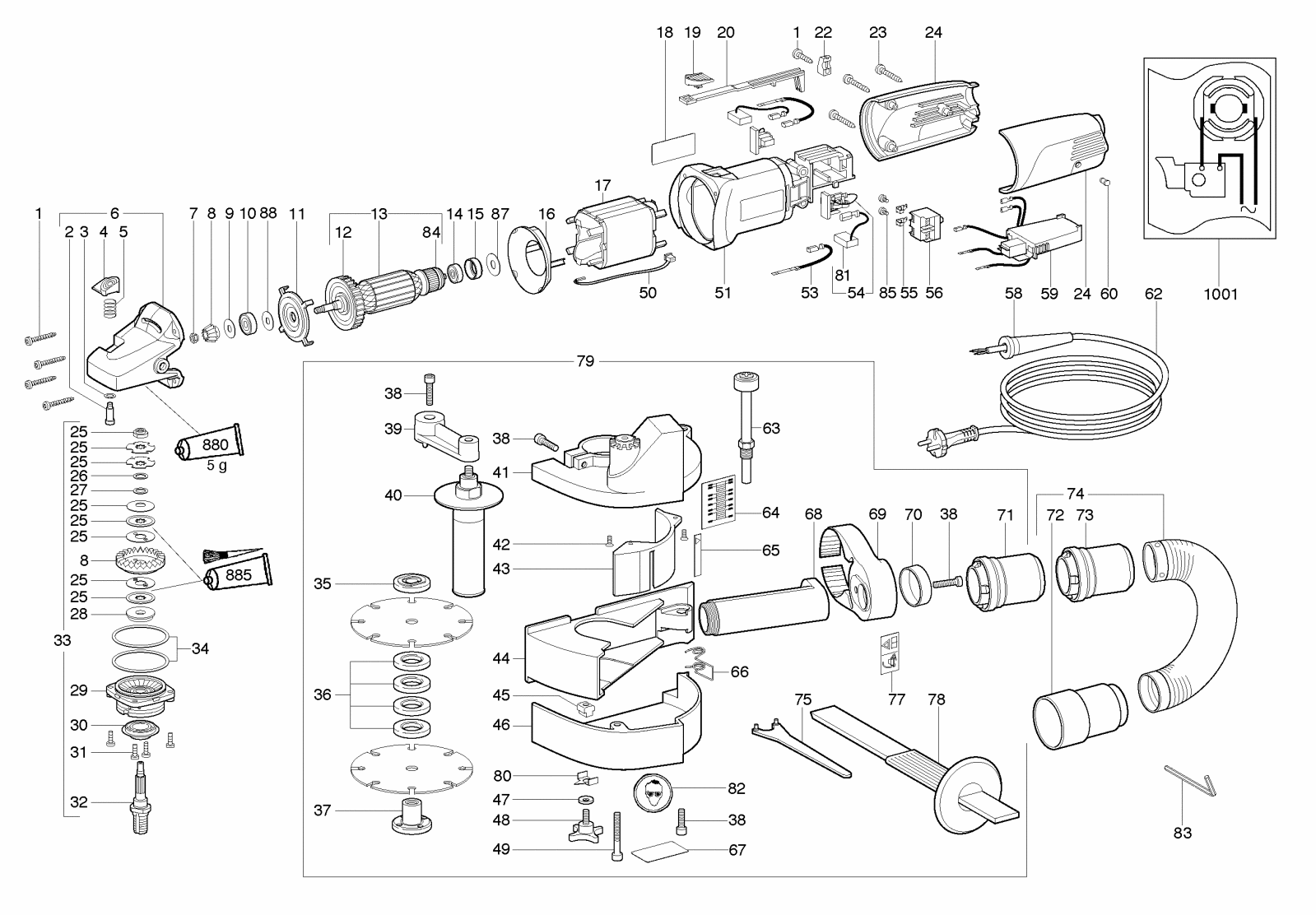 Zeichnung 1 Sollten Sie Fragen zu einem Ersatzteil von Metabo MFE 30 Diamant-Technik 601119190 haben, können Sie uns gerne eine E-Mail (mit einem Foto vom Typenschild Ihres Gerätes) schreiben oder eine Ersatzteilanfrage stellen.