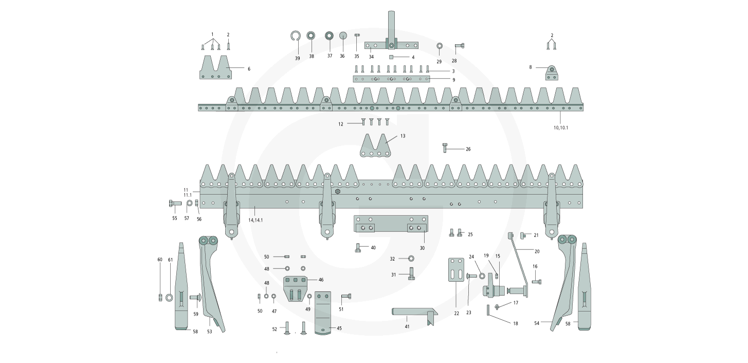 Ab hier finden Sie alle verfügbaren ESM Ersatzteile vom Mähbalken Kommunal C (Schwingenantrieb) für Agria 3400: