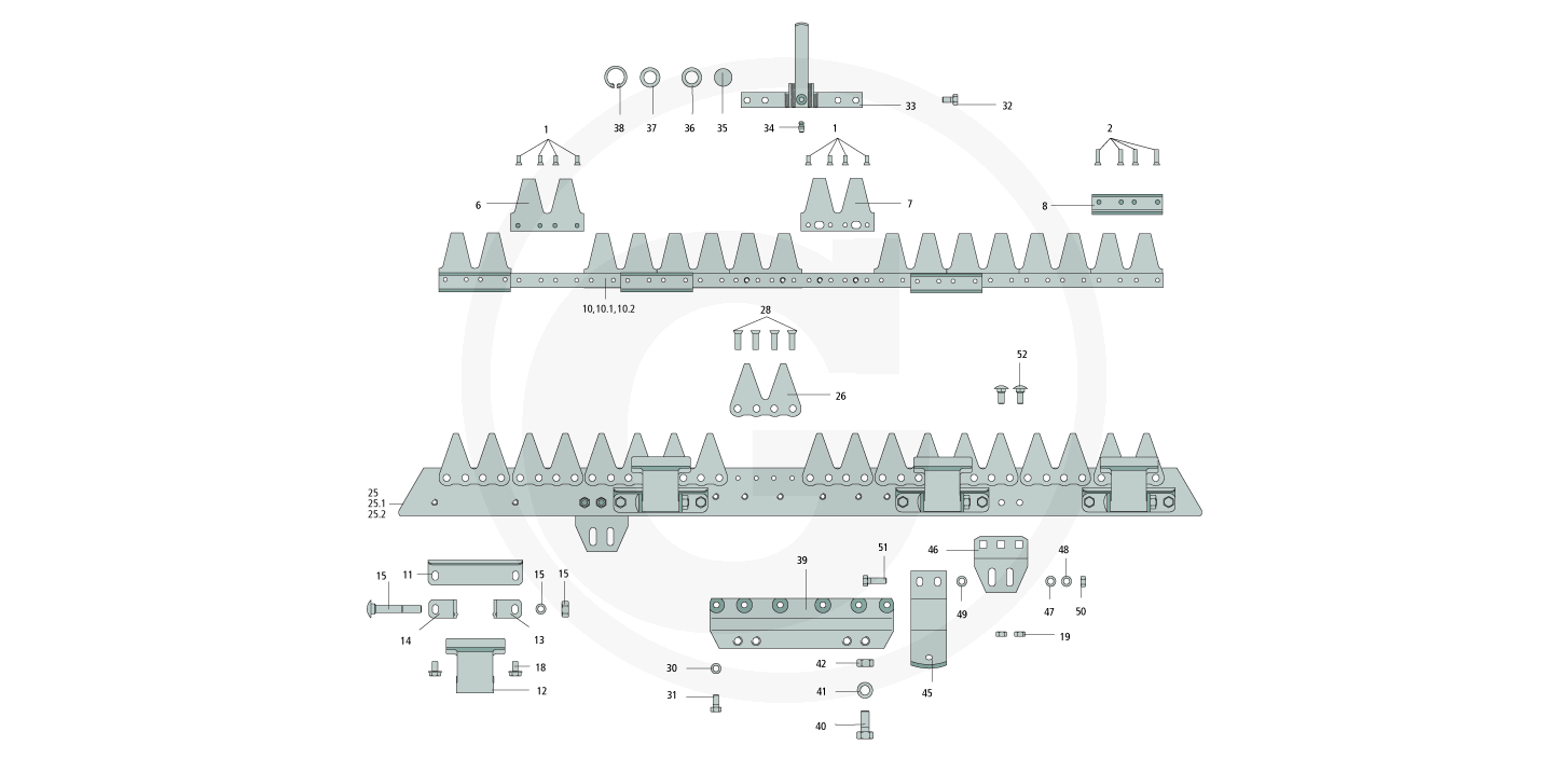 Ab hier finden Sie alle verfügbaren ESM Ersatzteile vom Mähbalken Universal SC (Schwingenantrieb 15mm Gelenkbolzen) für Agria 3400: