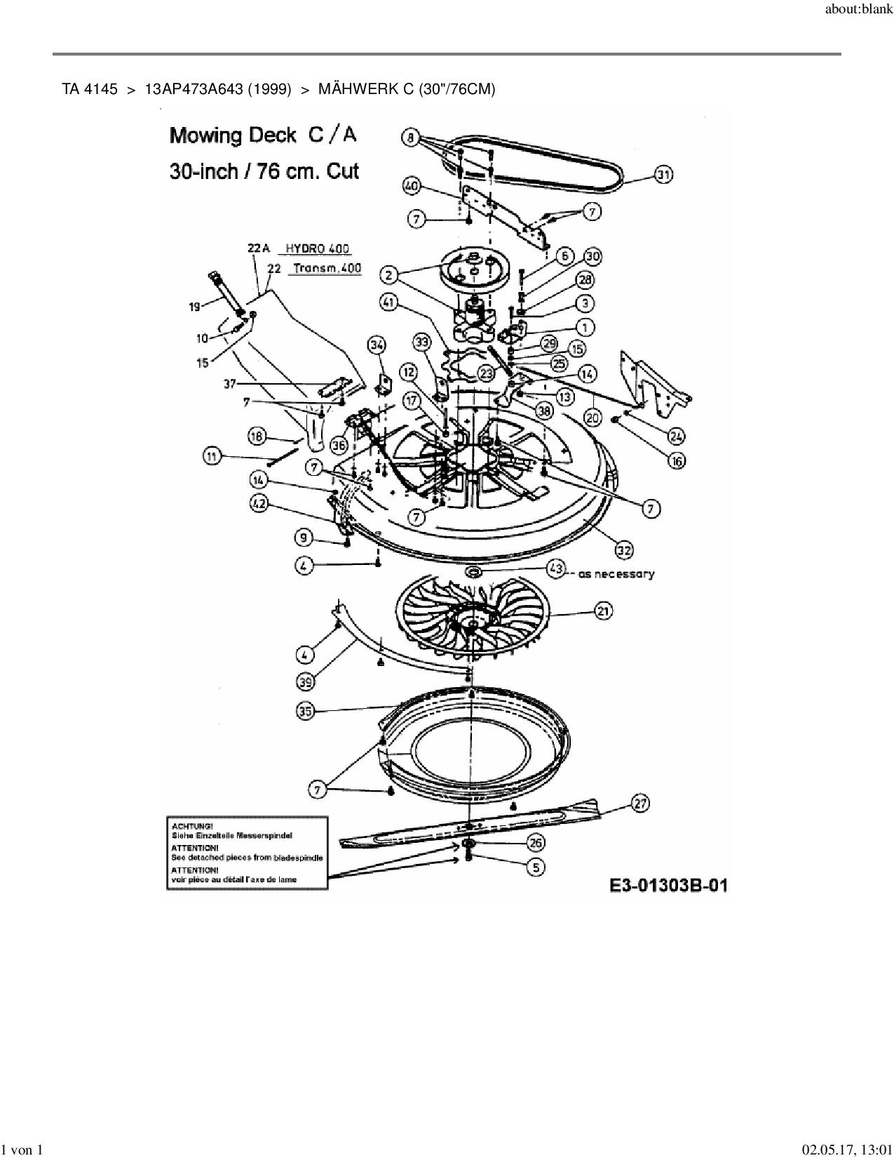 Ersatzteile für Rasentraktor Yard-Man TA 4145 aus der Zeichnung Mähwerk C (30"/76cm):