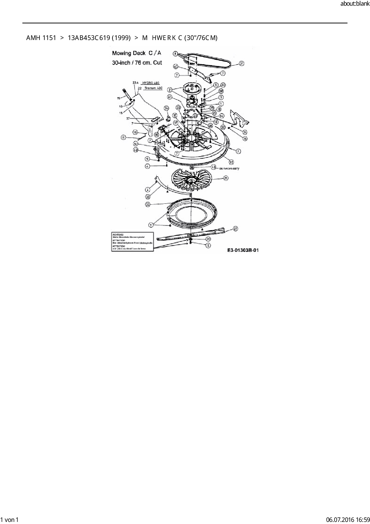 Ersatzteile für Rasentraktor FLEURELLE AMH 1151 aus der Zeichnung Mähwerk C (30"/76cm):