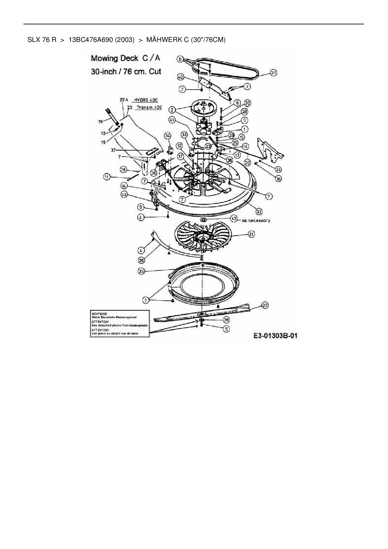 Ersatzteile für Rasentraktor Gutbrod SLX 76 R aus der Zeichnung Mähwerk C (30"/76cm):
