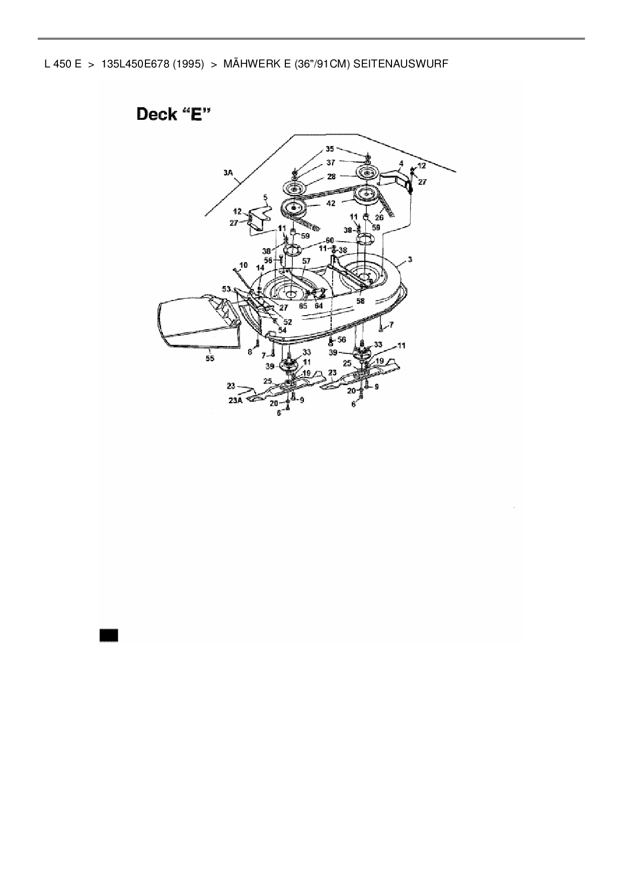 Ersatzteile für Rasentraktor MTD L 450 E aus der Zeichnung Mähwerk E (36"/91cm) Seitenauswurf: