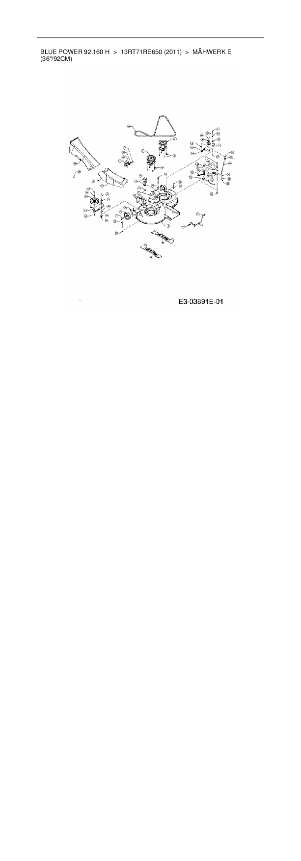 Ersatzteile für Rasentraktor Wolf-Garten Blue Power 92.160 H aus der Zeichnung Mähwerk E (36"/92cm):