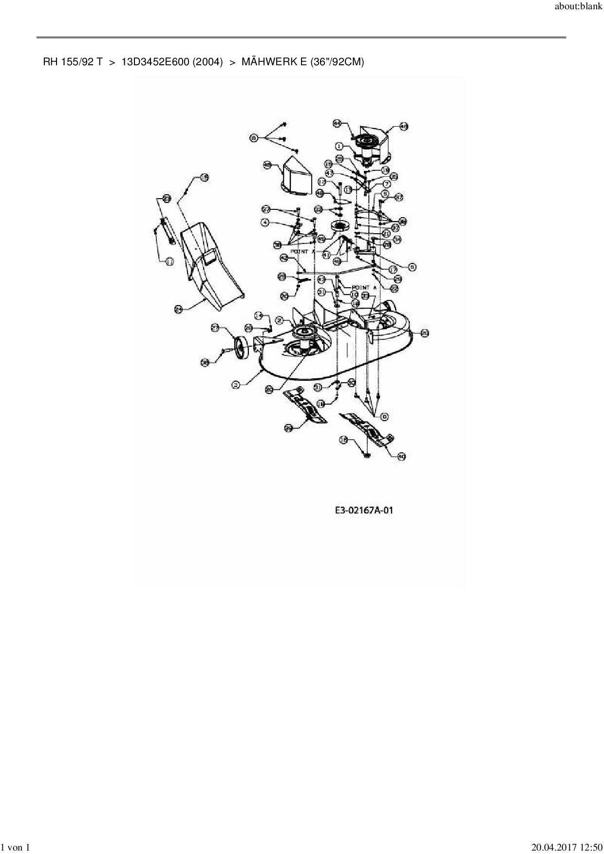 Ersatzteile für Rasentraktor MTD RH 155/92 T aus der Zeichnung Mähwerk E (36"/92cm):