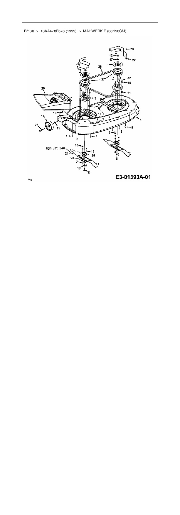Ersatzteile für Rasentraktor MTD B/130 aus der Zeichnung Mähwerk F (38"/96cm) 2:
