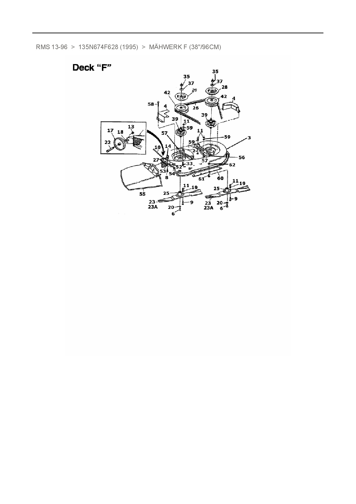 Ersatzteile für Rasentraktor Raiffeisen RMS 13-96 aus der Zeichnung Mähwerk F (38"/96cm)(2):