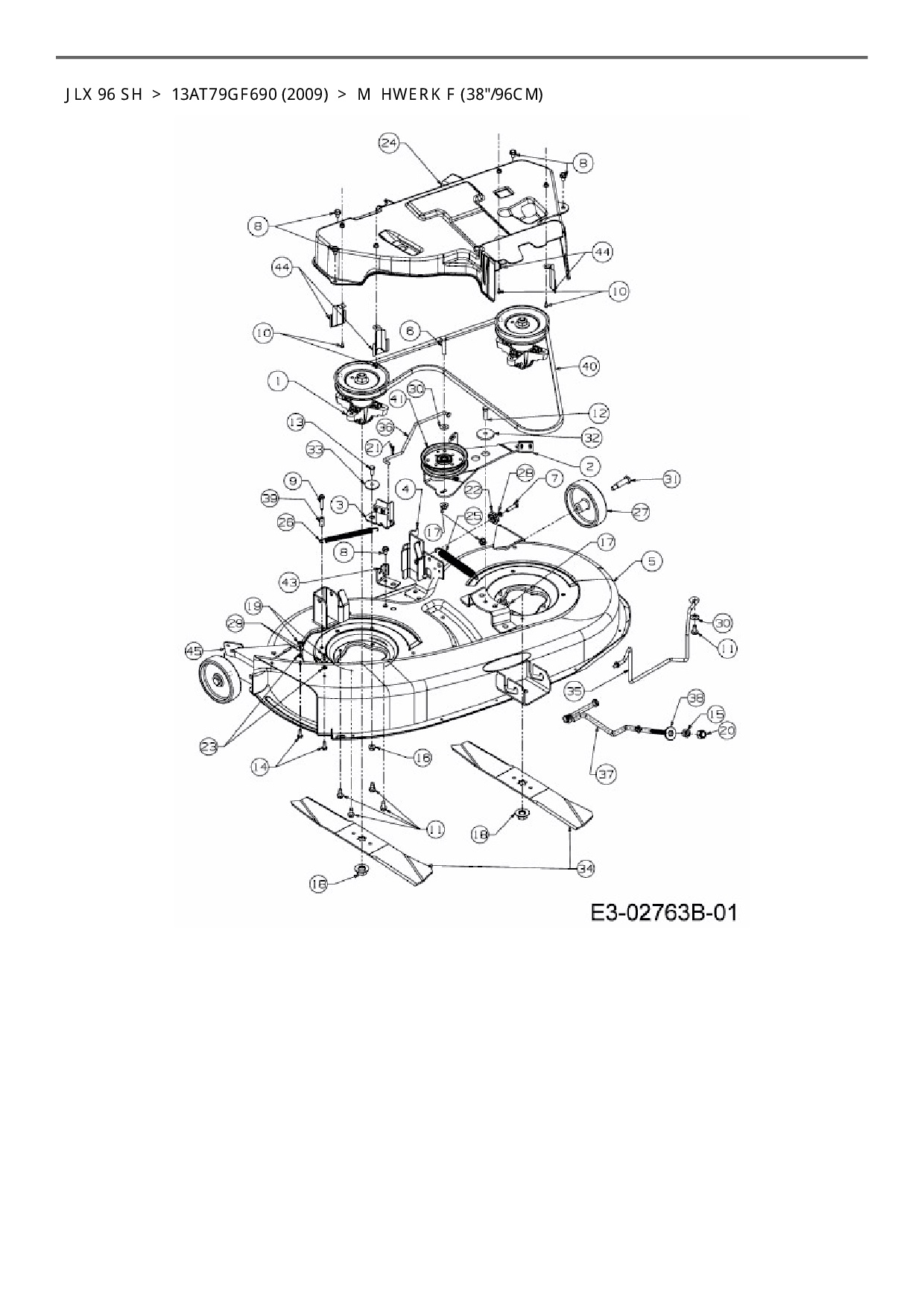 Ersatzteile für Rasentraktor Gutbrod JLX 96 SH aus der Zeichnung Mähwerk F (38"/96cm):