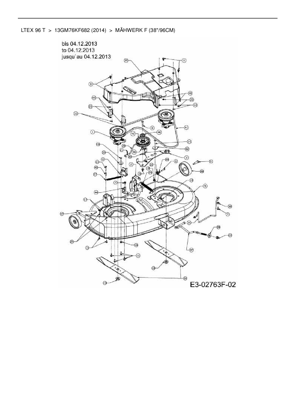 Download Ersatzteil-Zeichnung MTD LTEX 96 T Zeichnung Mähwerk F (38"/96cm) (PDF-Format)