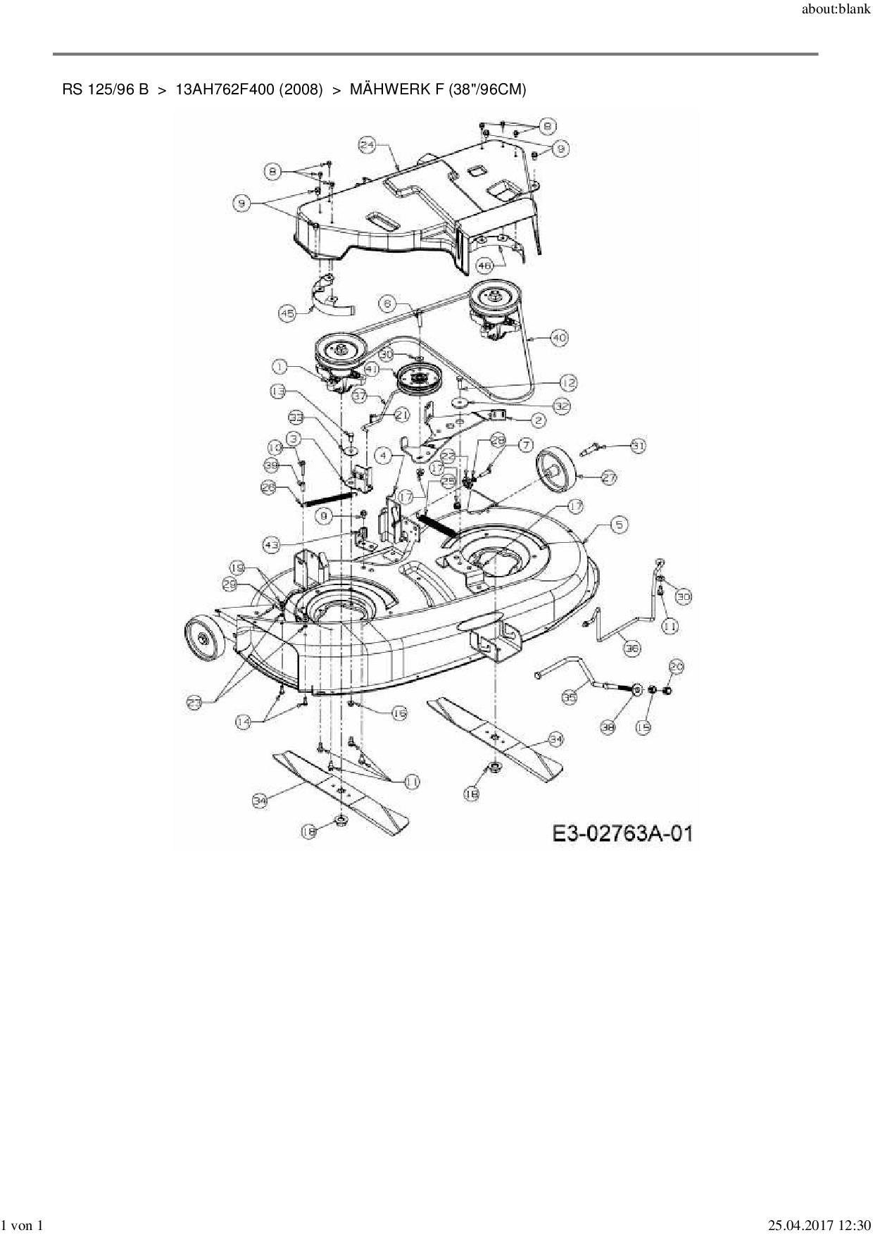 Ersatzteile für Rasentraktor MTD RS 125/96 B aus der Zeichnung Mähwerk F (38"/96cm):