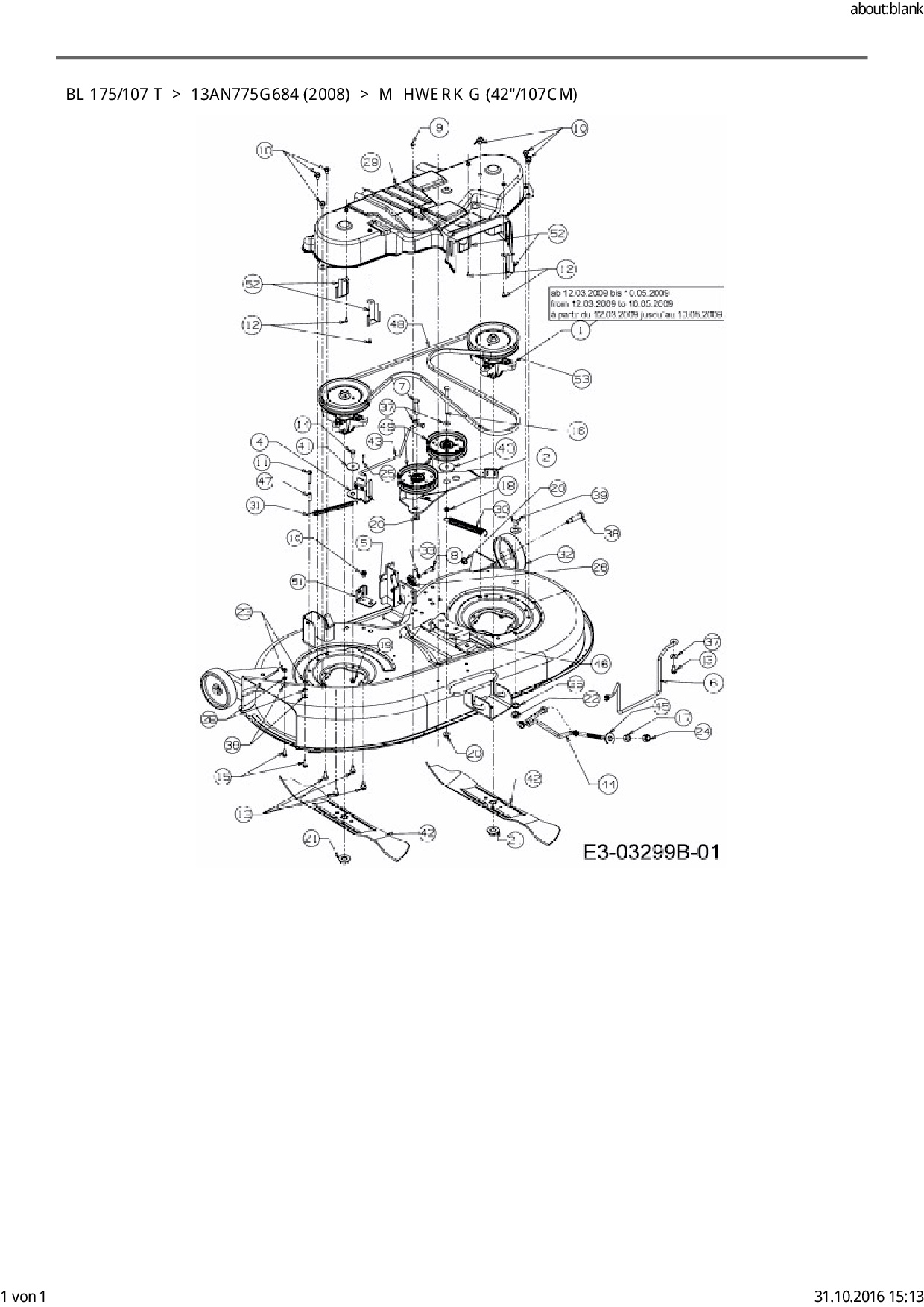 Ersatzteile für Rasentraktor Bolens BL 175/107 T aus der Zeichnung Mähwerk G (42"/107cm):