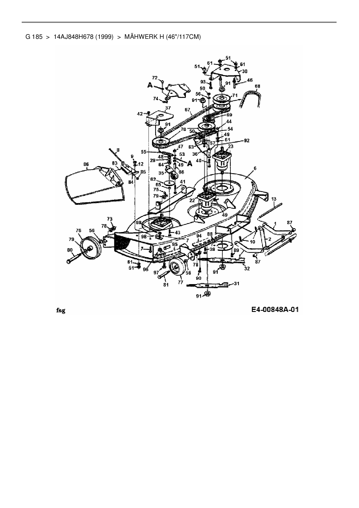 Ersatzteile für Gartentraktor MTD G 185 aus der Zeichnung Mähwerk H (46"/117cm):