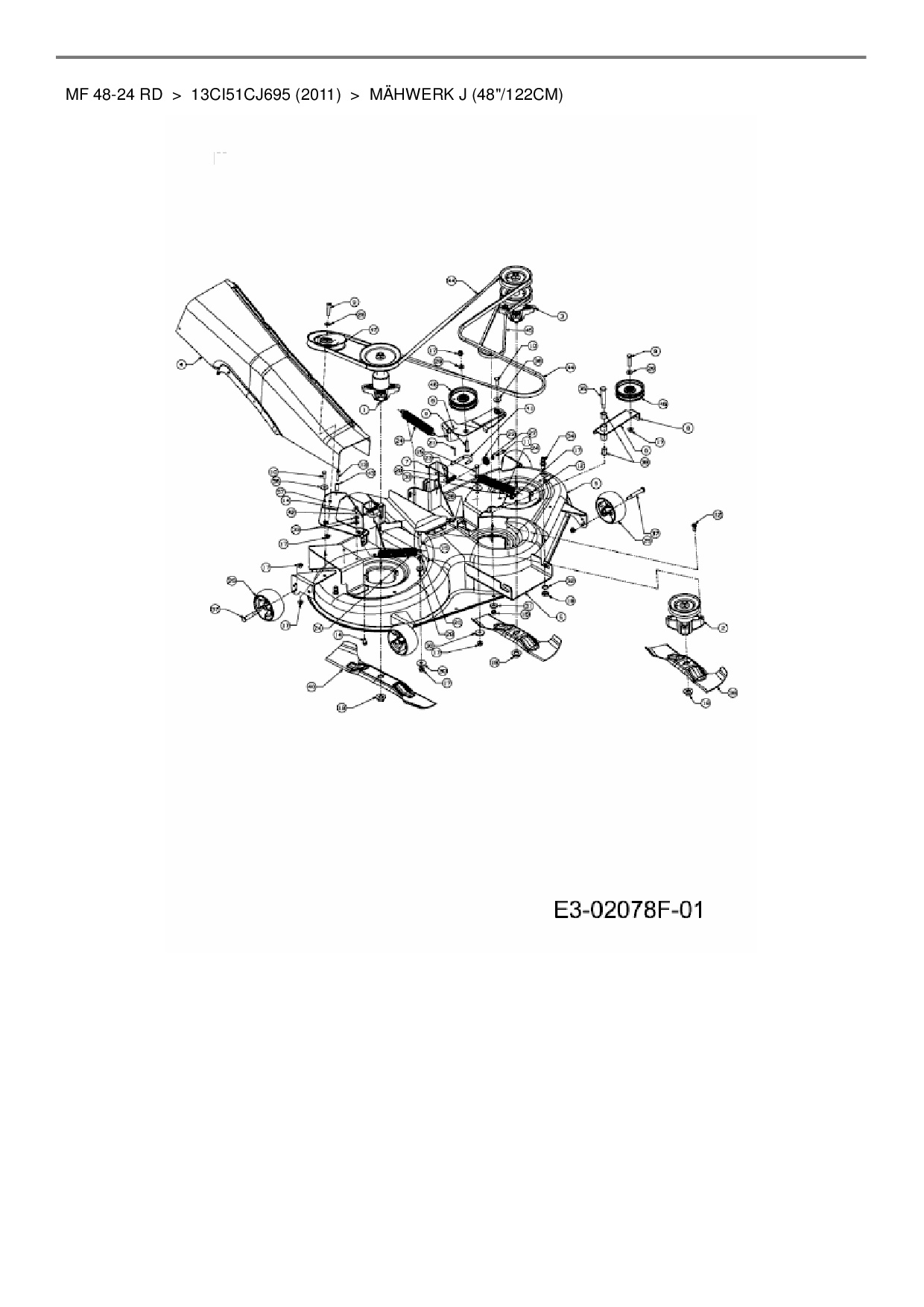 Ersatzteile für Rasentraktor Massey Ferguson MF 48-24 RD aus der Zeichnung Mähwerk J (48"/122cm):