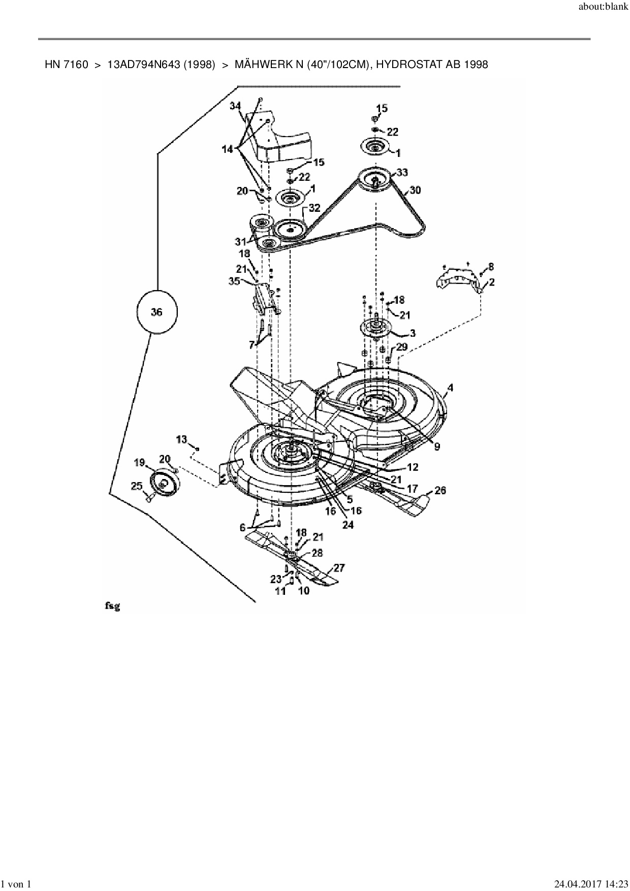 Ersatzteile für Rasentraktor Yard-Man HN 7160 aus der Zeichnung Mähwerk N (40"/102cm), Hydrostat ab 1998: