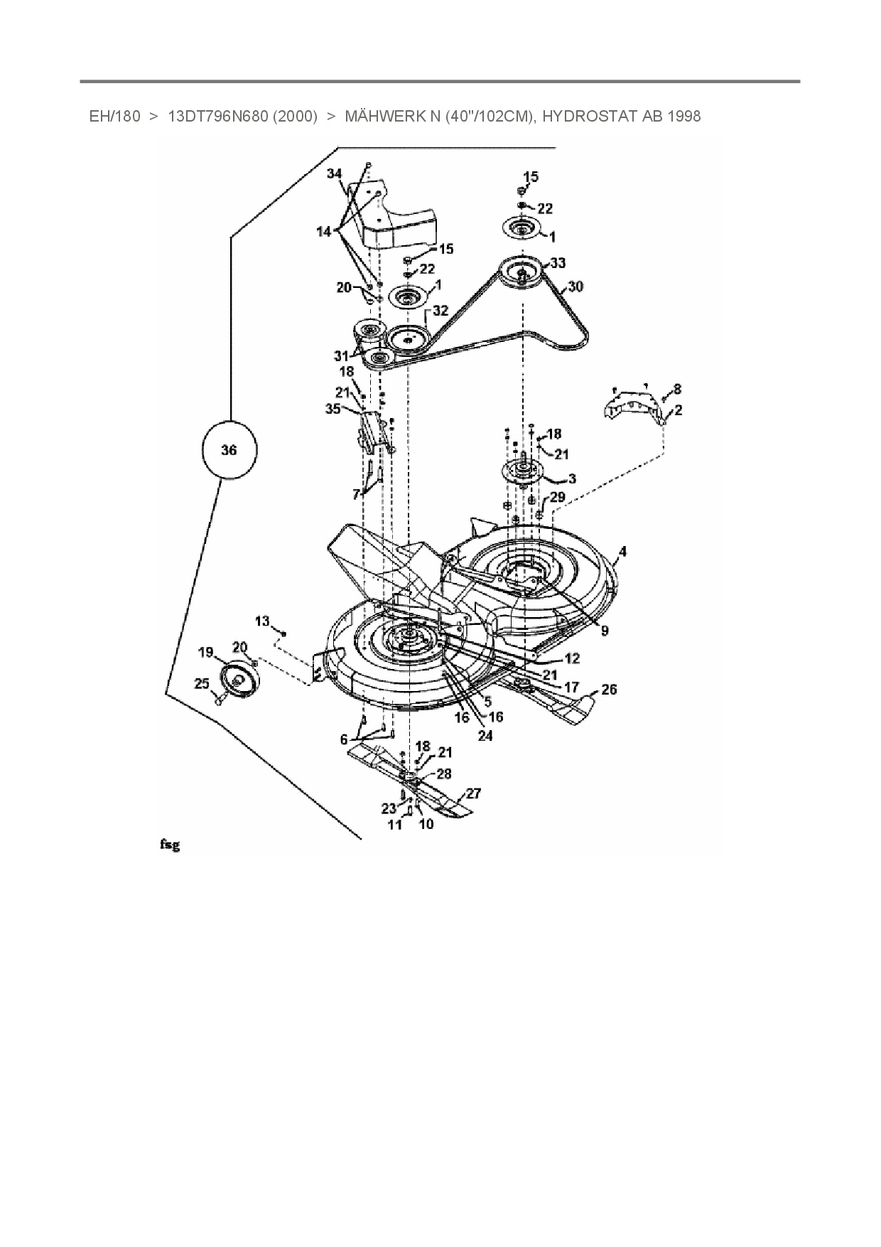 Ersatzteile für Rasentraktor White EH/180 aus der Zeichnung Mähwerk N (40"/102cm), Hydrostat ab 1998: