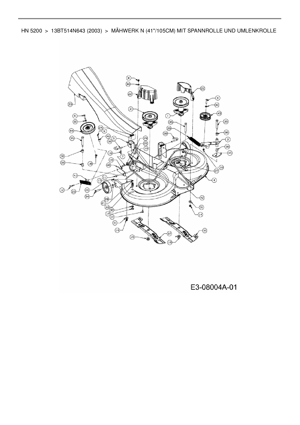 Ersatzteile für Rasentraktor Yard-Man HN 5200 aus der Zeichnung Mähwerk N (41"/105cm) mit Spannrolle und Umlenkrolle: