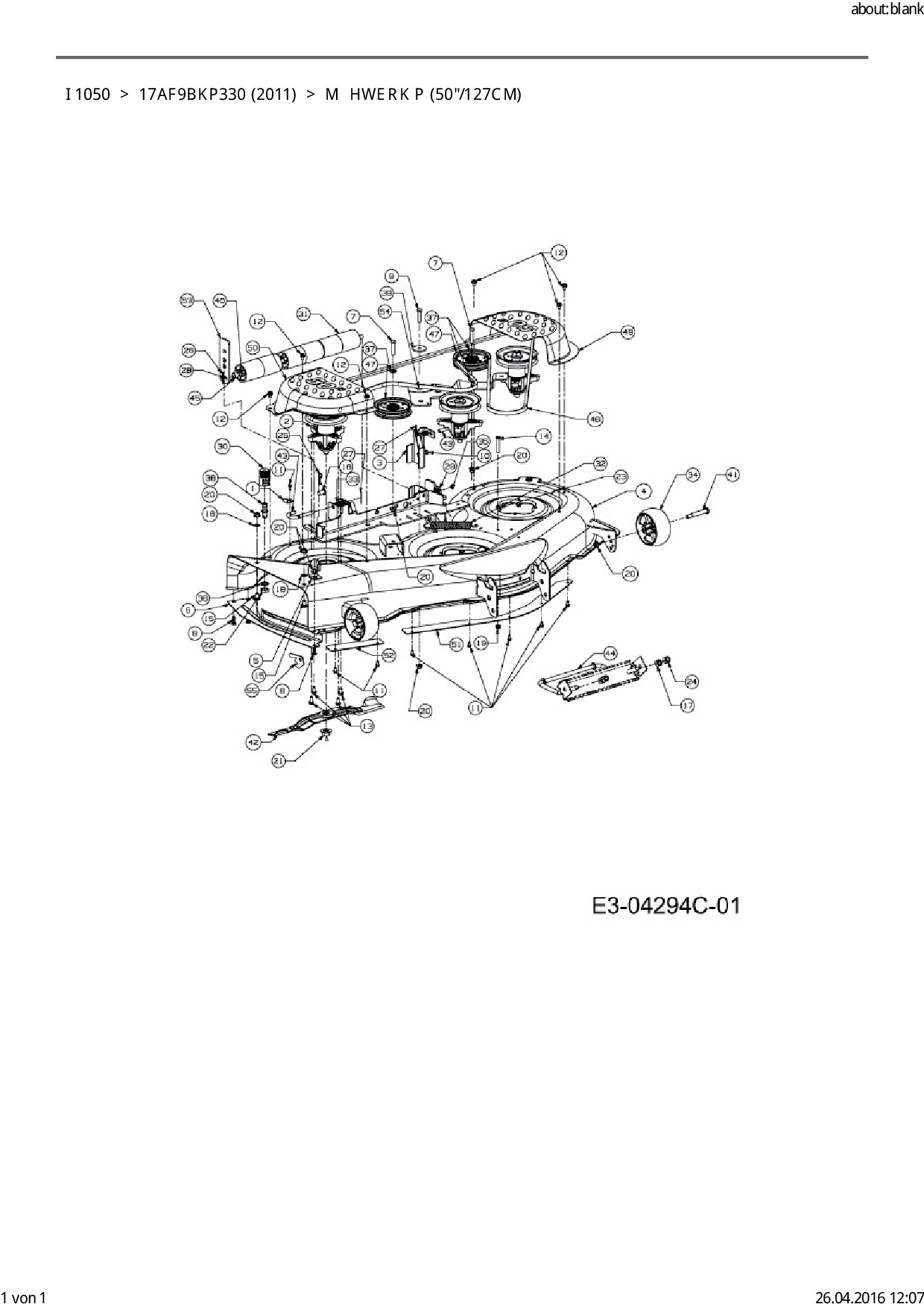 Ersatzteile für Zero Turn Cub Cadet i 1050 aus der Zeichnung Mähwerk P (50"/127cm):
