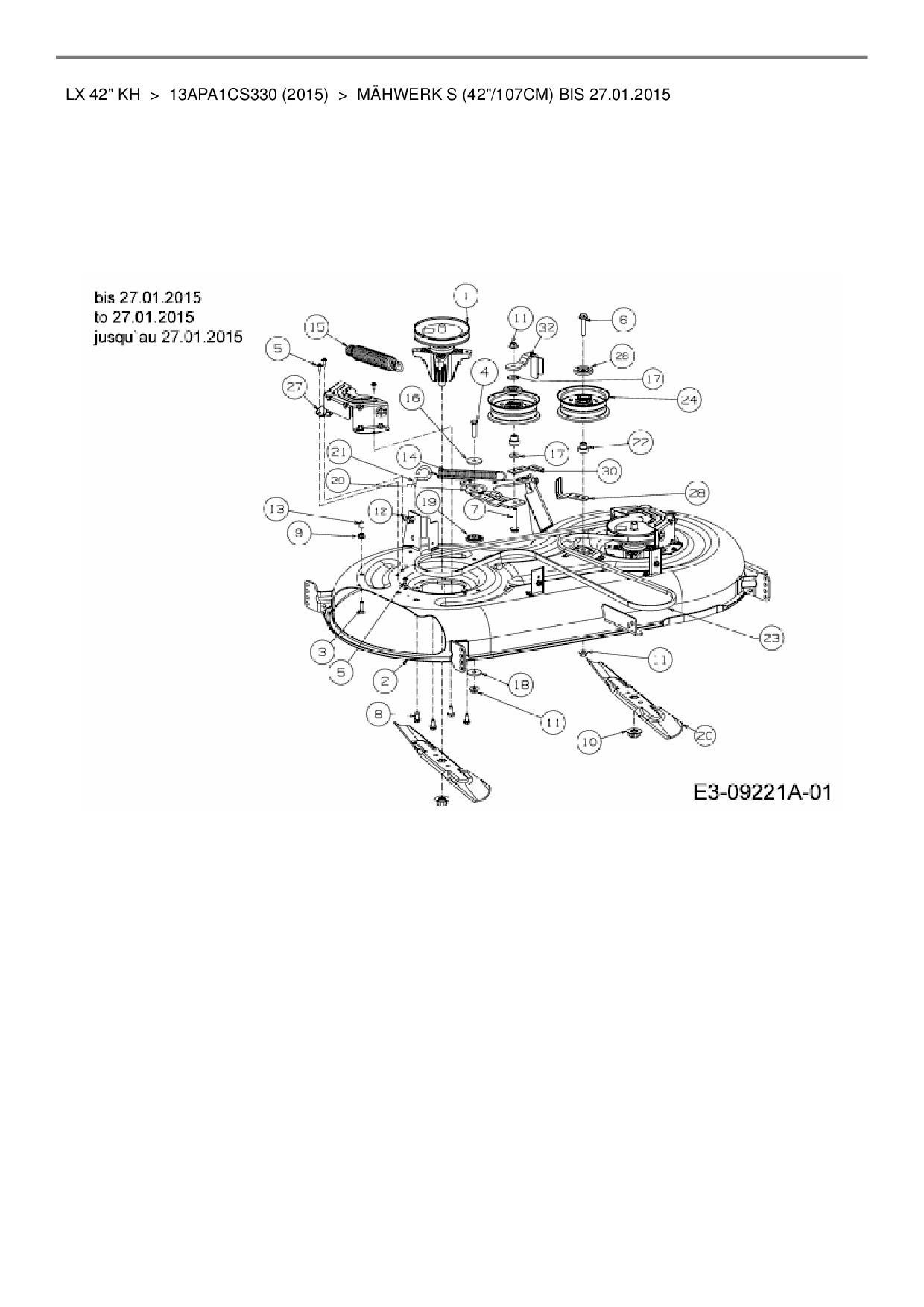 Ersatzteile für Rasentraktor Cub Cadet LX 42" KH aus der Zeichnung Mähwerk S (42"/107cm) bis 27.01.2015: