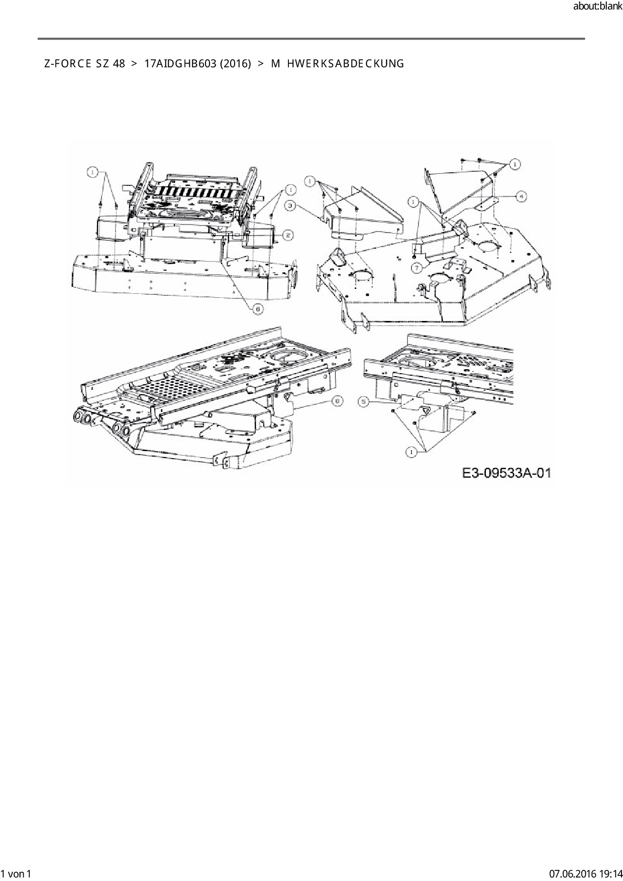 Ersatzteile für Zero Turn Cub Cadet Z-Force SZ 48 aus der Zeichnung Mähwerksabdeckung: