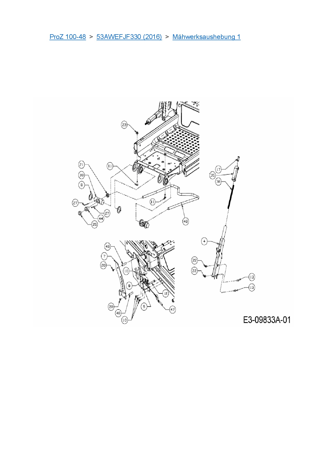 Ersatzteile für Zero Turn Cub Cadet ProZ 100-48 aus der Zeichnung Mähwerksaushebung 1: