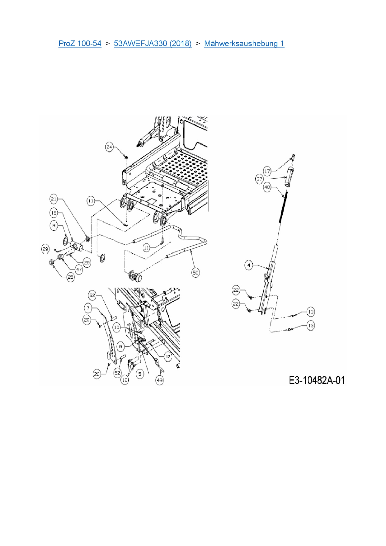 Ersatzteile für Zero Turn Cub Cadet ProZ 100-54 aus der Zeichnung Mähwerksaushebung 1: