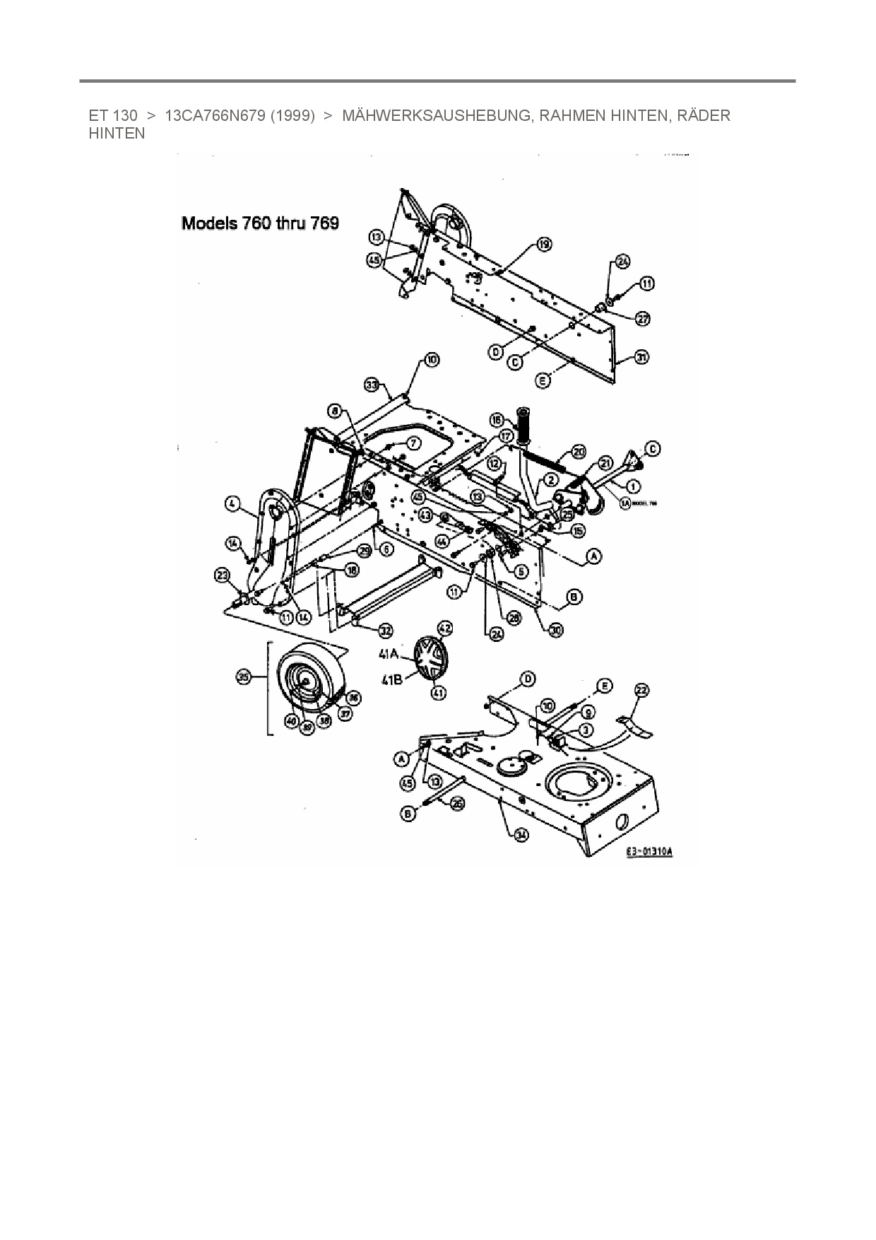 Zeichnung für White Rasentraktor ET 130 mit der Geräte-Artikelnr. 13CA766N679 ab Baujahr 1999: