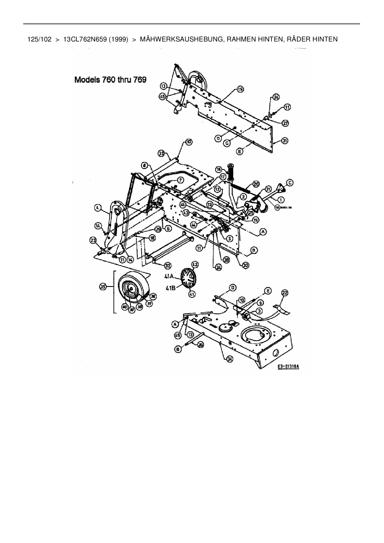 Zeichnung für Mastercut Rasentraktor 125/102 mit der Geräte-Artikelnr. 13CL762N659 ab Baujahr 1999: