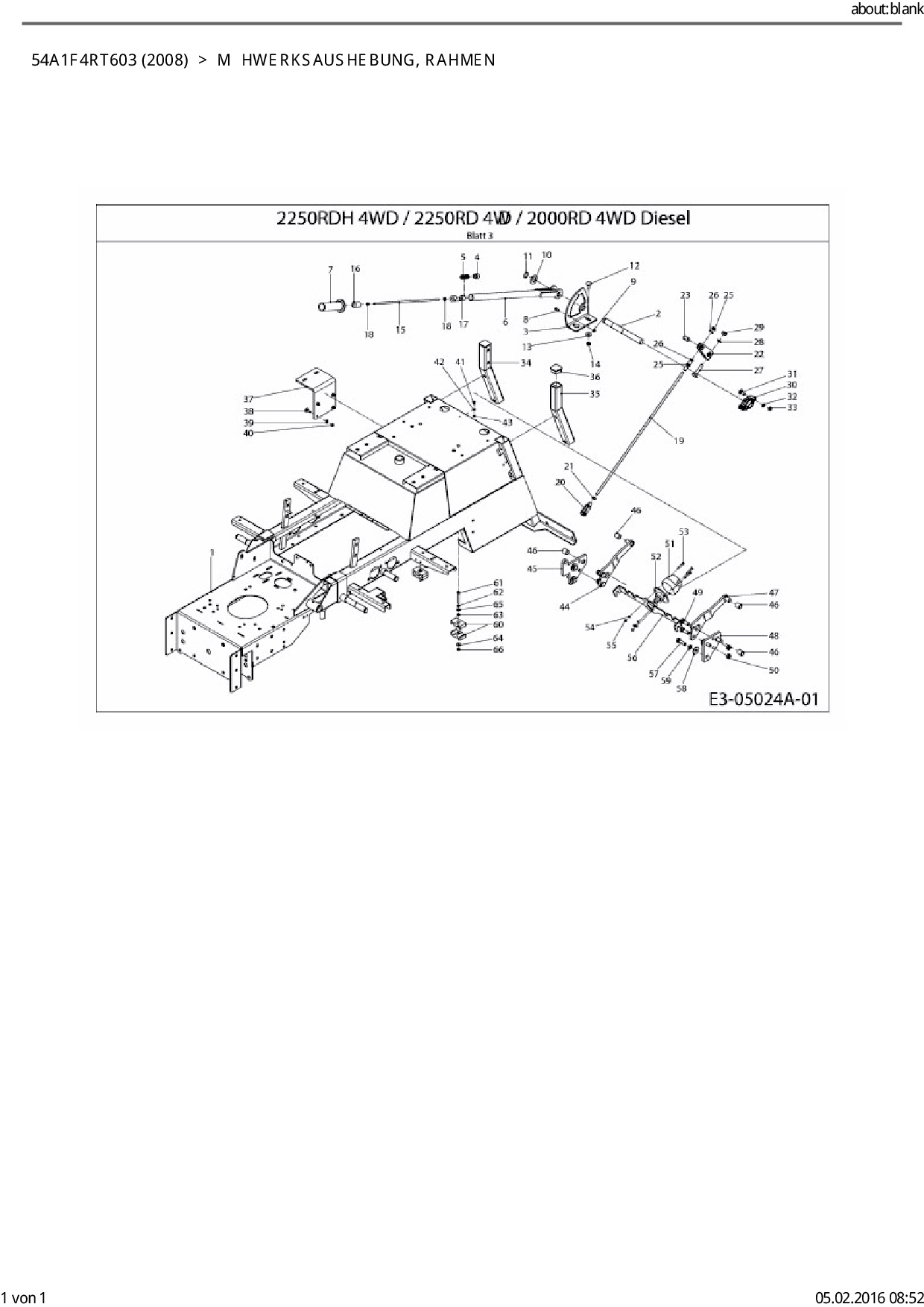 Download Ersatzteil-Zeichnung Cub Cadet CC 2250 RDH 4 WD Zeichnung Mähwerksaushebung, Rahmen (PDF-Format)