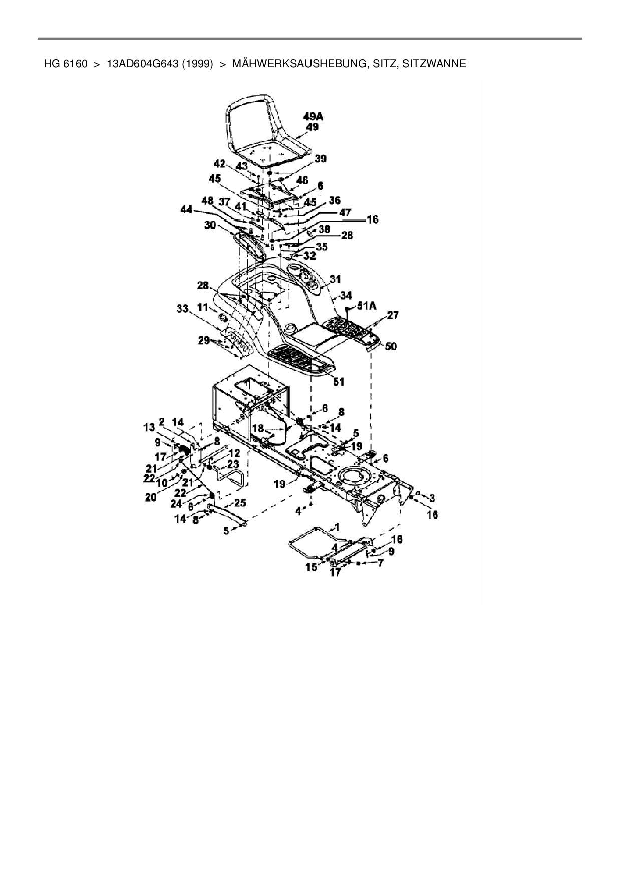 Ersatzteile für Rasentraktor Yard-Man HG 6160 aus der Zeichnung Mähwerksaushebung, Sitz, Sitzwanne: