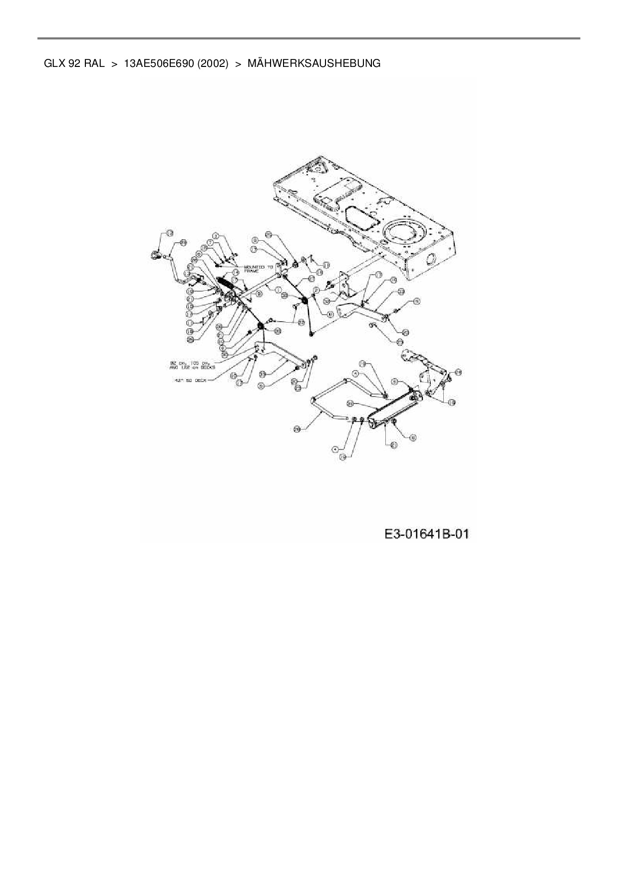Ersatzteile für Rasentraktor Gutbrod GLX 92 RAL aus der Zeichnung Mähwerksaushebung: