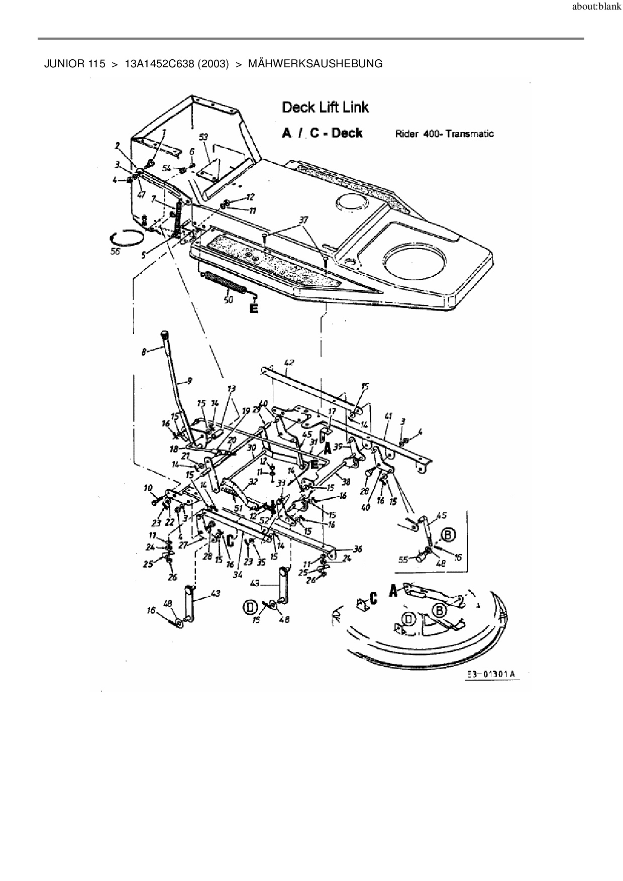 Ersatzteile für Rasentraktor Junior Junior 115 aus der Zeichnung Mähwerksaushebung: