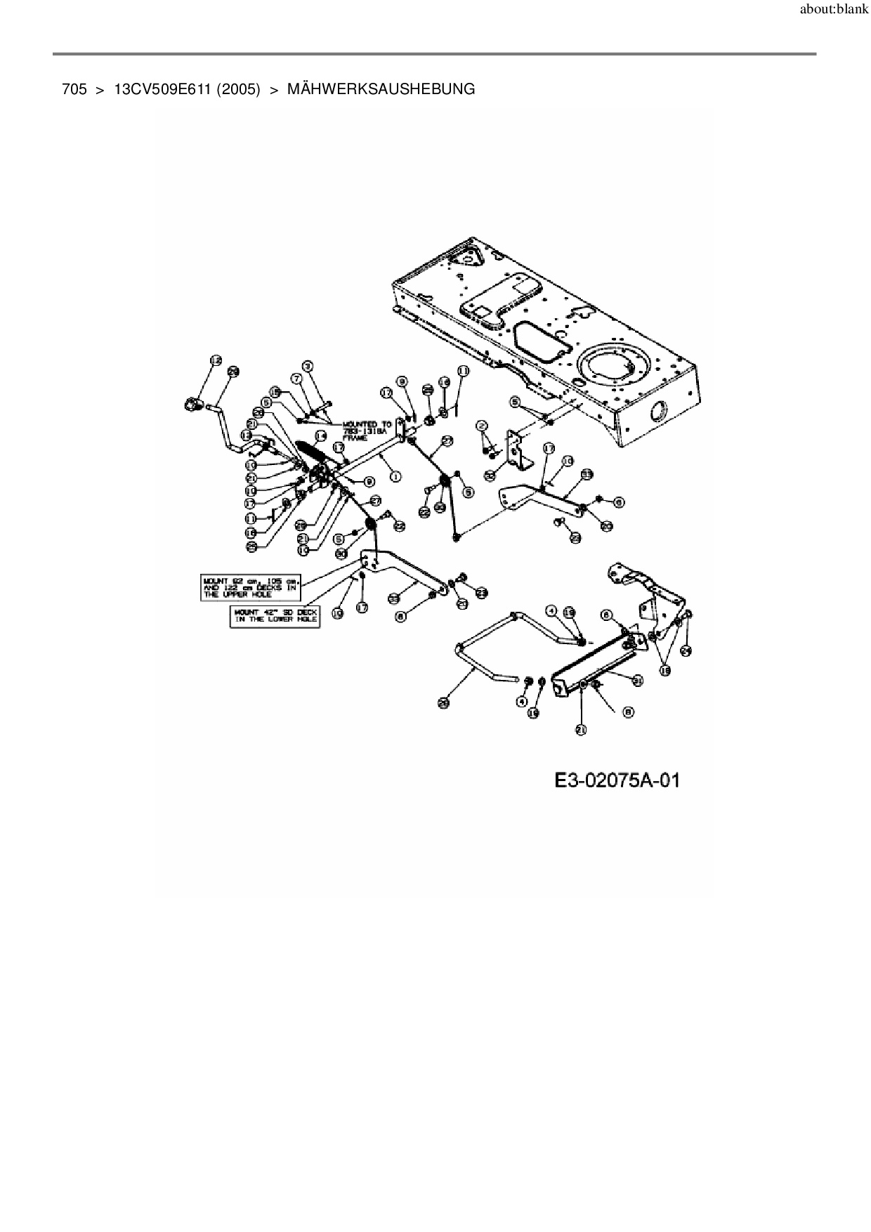 Ersatzteile für Rasentraktor Lawnflite 705 aus der Zeichnung Mähwerksaushebung: