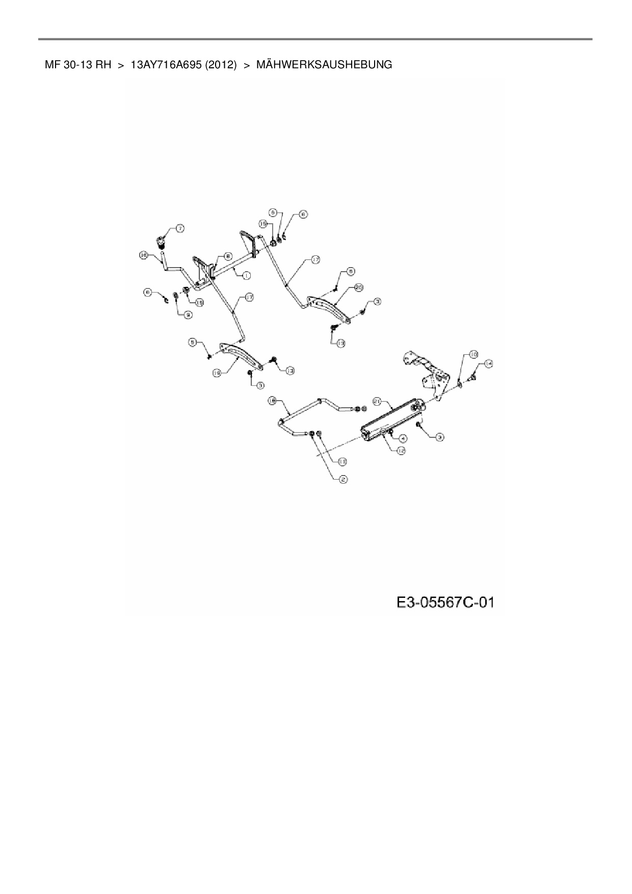 Ersatzteile für Rasentraktor Massey Ferguson MF 30-13 RH aus der Zeichnung Mähwerksaushebung: