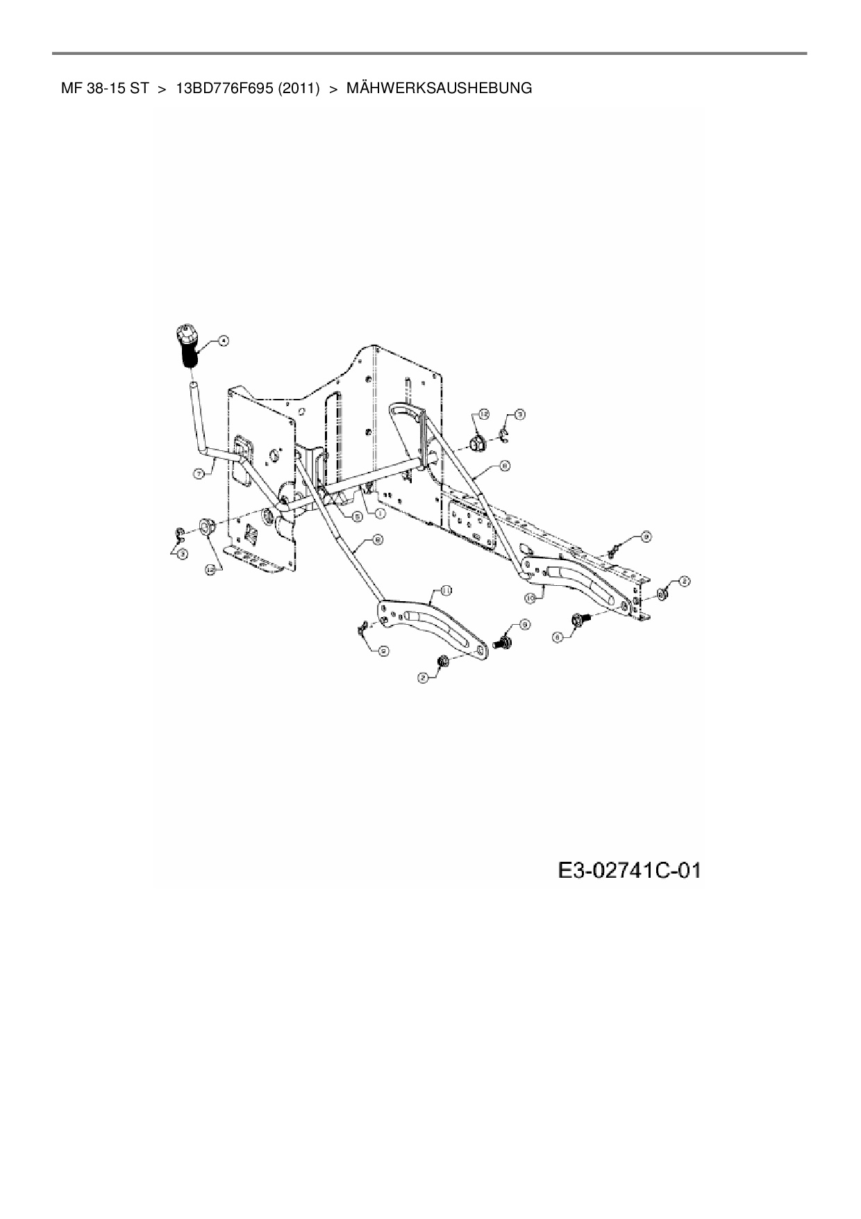 Ersatzteile für Rasentraktor Massey Ferguson MF 38-15 ST aus der Zeichnung Mähwerksaushebung: