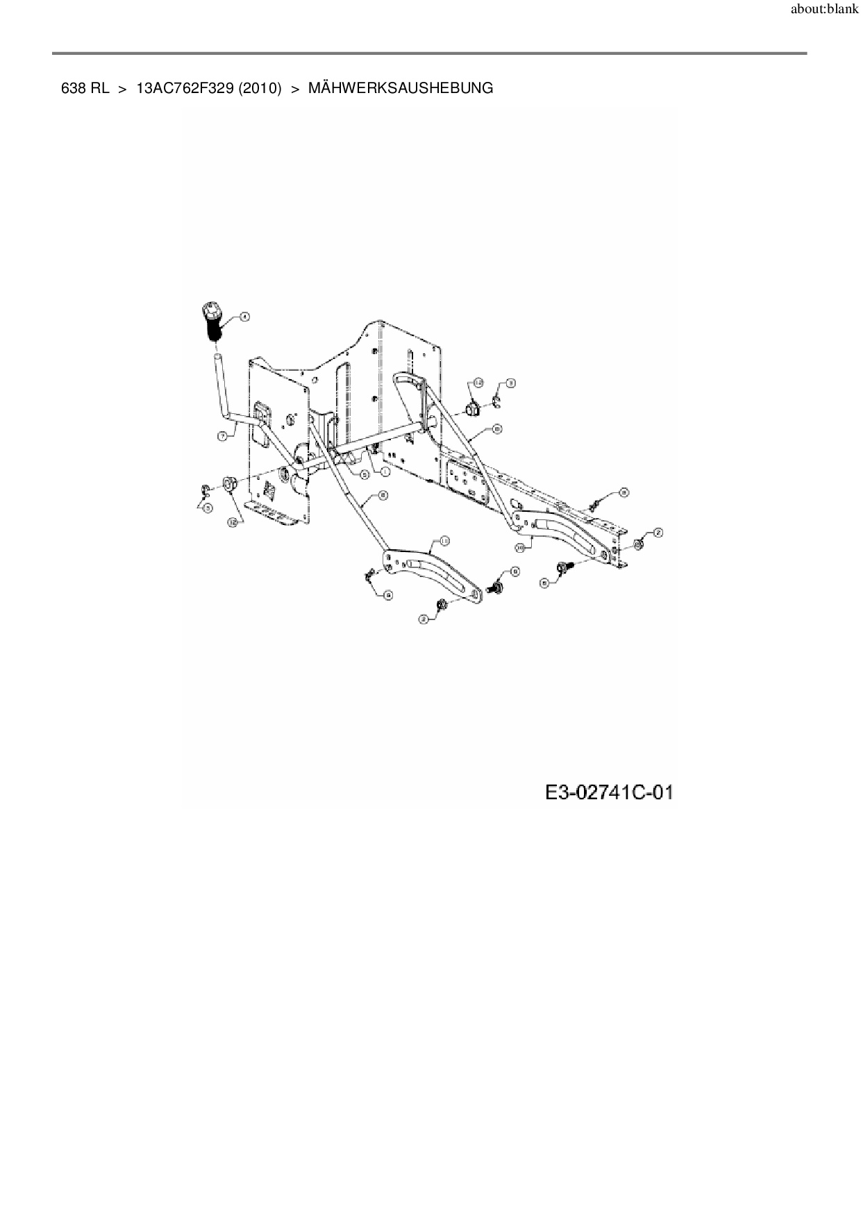 Ersatzteile für Rasentraktor MTD 638 RL aus der Zeichnung Mähwerksaushebung: