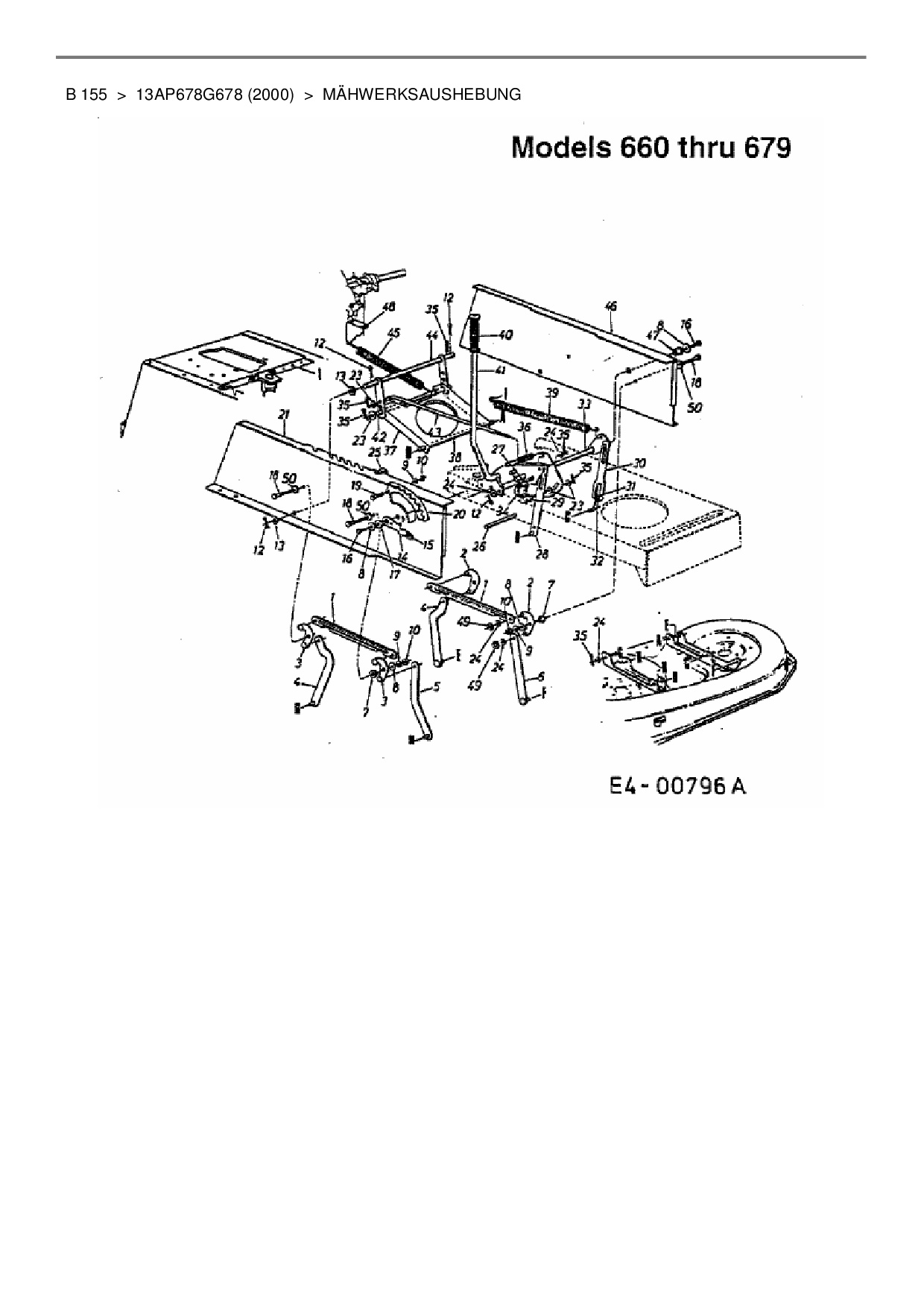 Ersatzteile für Rasentraktor MTD B 155 aus der Zeichnung Mähwerksaushebung:
